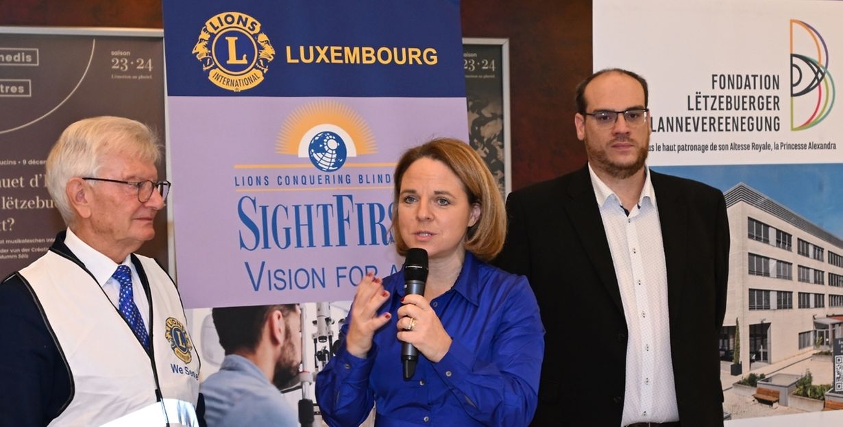 PDG Nico Bley, coordinateur « SightFirst », Corinne Cahen, échevin en charge de l’intégration des personnes à besoins spécifiques et Damien Talbot, chef du département BBS de la Fondation Lëtzebuerger Blannevereenegung