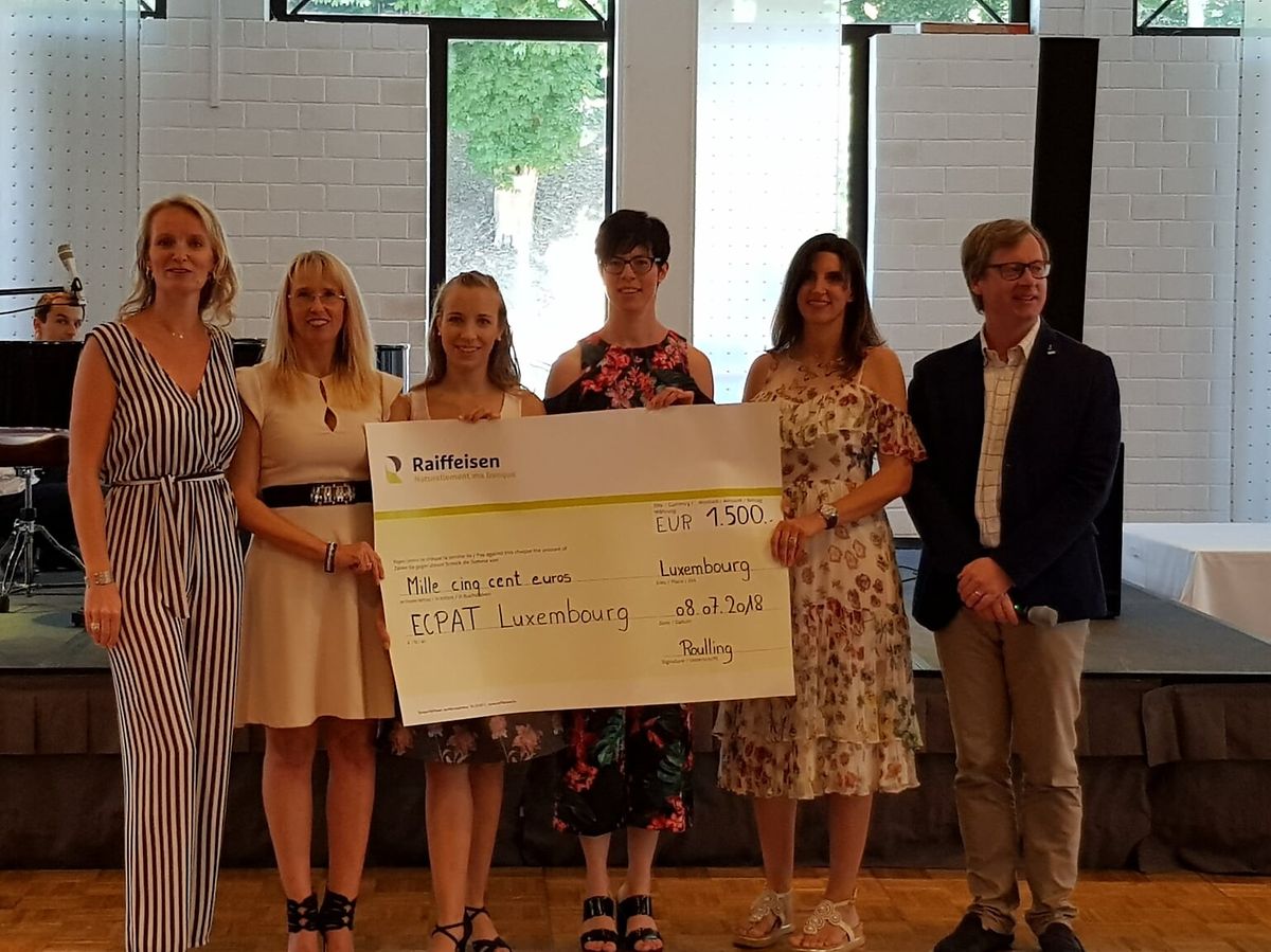 Les bénéfices de cette soirée de PREMIER BAL reviennent à l’Association « Ecpat Luxembourg – Pour un monde sans exploitation sexuelle des enfants ». La remise du chèque de la somme de 1.500€ a été célébrée ce dimanche dernier 08 juillet lors du Brunch dansant de l’Ecole de Danse.