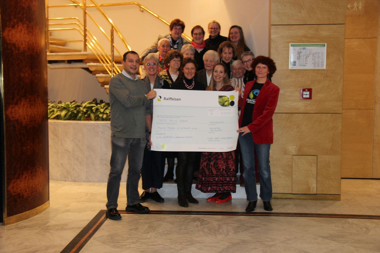 Récemment, le club Luxembourg-Doyen du Soroptimist International a remis un chèque de 3.000€ à l'organisation Fairtrade Luxembourg. Dans une excellente présentation, Valérie Murat, responsable Fairtrade Communes et Formation, a souligné la lutte commune des Soroptimist et de son organisation pour le respect des droits humains et en particulier des droits des femmes. Bien que les femmes soient les principales productrices, elles n’obtiennent que rarement une part des fruits de leur dur travail. Fairtrade les soutient dans leurs efforts de réduire les inégalités dans le travail et défend de strictes normes pour améliorer leur vie. Dans ses activités de sensibilisation, Fairtrade s’adresse aux organisations de production, aux entreprises et aux consommateurs, car tout et chacun fait partie de la solution. Chacun(e) peut contribuer à faire du commerce équitable la norme dans son environnement privé, social et professionnel. Les petits producteurs ne demandent pas de l’aide, ils veulent que justice soit fait, que les droits humains soient respectés et qu'ils puissent dignement gagner leur vie. Avec le chèque du club Luxembourg-Doyen, Valérie compte renforcer ses activités de sensibilisation au Luxembourg.