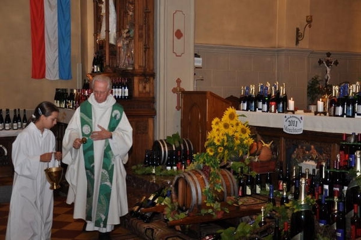 Der Samstag stand ganz im Zeichen der deutsch-luxemburgischen Freundschaft mit u. a. der Wahl der siebten Saar-Obermosel-Weinkönigin, wo sich zwei Kandidatinnen der Wahl im Hotel Nitteler Hof stellten. Die Entscheidung fiel auf Maria Steffes aus Yel (D). Der Sonntagvormittag begann mit einem feierlichen Hochamt mit Weinsegnung, zelebriert von Abbé Jos Mathgen und gesanglich mitgestaltet von der „Chorale Ste-Cécile Bech-Biwer-Hemstal“. Jos Mathgen begrüßte die Gläubigen im Namen der Pfarrgemeinschaft. Er bedankte sich bei den Verantwortlichen für das alljährlich am dritten Sonntag im August organisierte Weinfest, das auch als christliches Fest zu bezeichnen sei. Der Wein wurde im Laufe der Eucharistiefeier feierlich gesegnet. (FD)