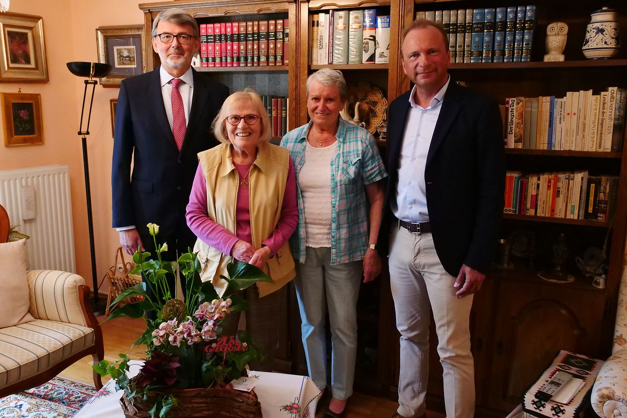 Clara Hoogmartens wurde 1929 in der Stadt Hasselt geboren, in der Region Limburg im flämischen Teil von Belgien. Bis 1952 frisierte und stylte sie ihre Kunden stets mit Freude in Houthalen wo sie ihren Beruf als Frisörin ausübte. Zwei Jahre zuvor heiratete sie Leone Formenti, der 2001 leider zu früh verstarb. Leone arbeitet für die ACLI, die Associazioni Cristiane Lavoratori Italiani - eine italienische Arbeitervereinigung. Wegen seiner Arbeit musste die famnilie zuerst nach Mons und dann nach La Louvière umziehen ehe es die Formentis 1957 nach Luxemburg zog. Aus der Ehe geht Tochter Daniela hervor. In den Sechziger musste sie leider ihren Beruf wegen der Erkrankung ihres Mannes an den Nagel hängen. Leone war im italienischen Konsulat tätig und mussten deswegen oft den Wohnort wechseln. Auf Wunsch von Clara zog es die Familie 1979 nach Italien - zuerst nach Verona und dann in die Stadt Coccaglio. Clara Hoogmartens kehrte 2003 nach dem Tod ihres Mannes zurück nach Luxemburg und lebt bis heute bei ihrer Tochter. Sie war bis ins hohe Alter eine sehr reisefreudige Person und es zog sie - meistens alleine - in ferne Länder wie zum Beispiel den USA oder Albanien. Gesundheitliche Probleme schoben dieser Tätigkeit leider ein Riegel vor. Dies tut ihrer Redseligkeit aber keinen Abbruch: Auch heute noch liebt sie es, sozialen Kontakte zu pflegen. Bürgermeister Gilles Roth und der erste Schöffe der Gemeinde Mamer Roger Negri entbieten Frau Hoogmartens ihre besten Wünsche.