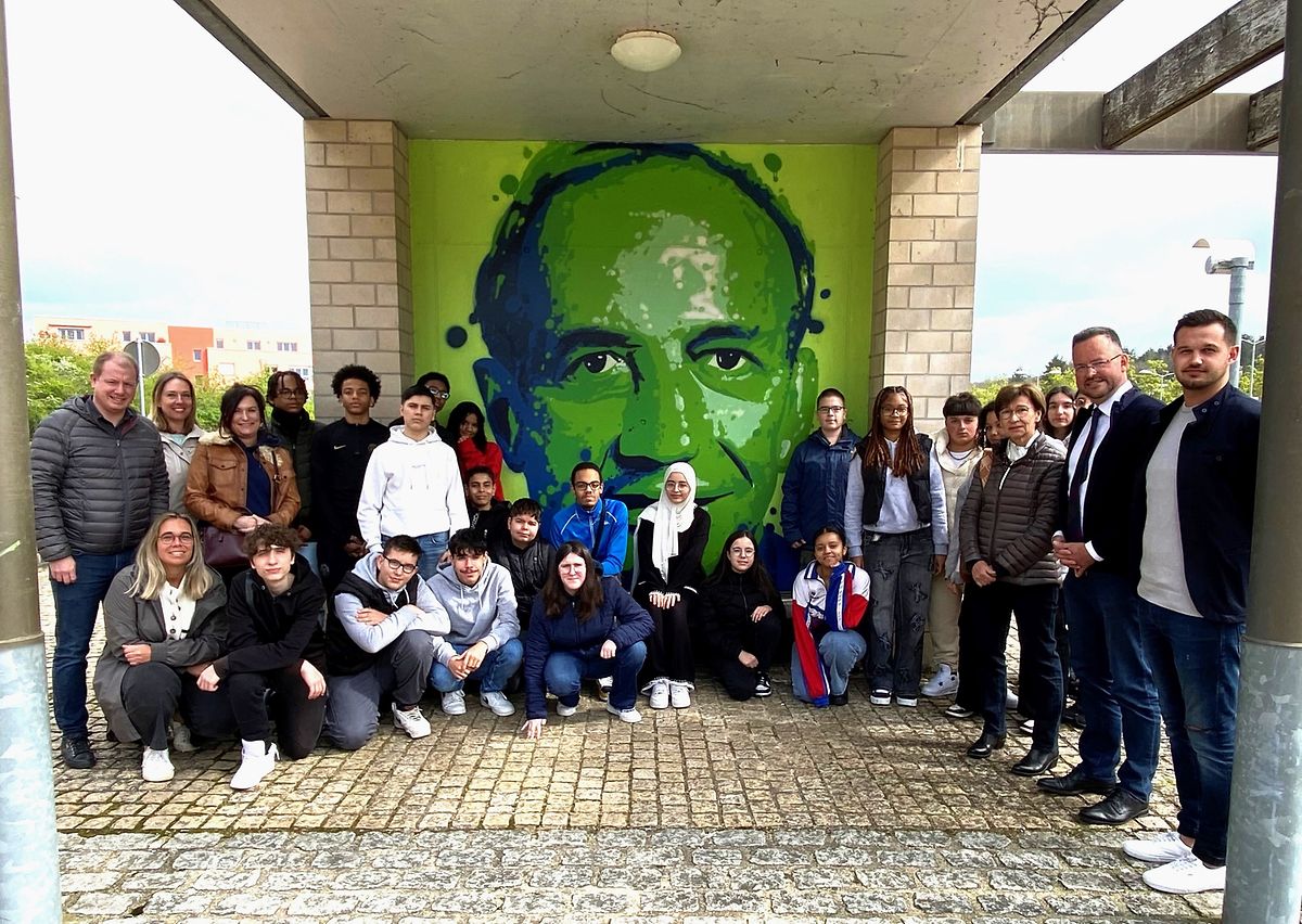 An engem flotte Projet hunn d’Schüler aus der Voie de préparation d’Mauere vum Lycée Josy Barthel Mamer verschéinert, dëst ënnert der Leedung vun de Kënschtler Daniel Mac Lloyd a Raphael Gindt aus dem “Kamellebuttek”. Ënnert deene villen impressionante Biller ass och ee Portrait vum Josy Barthel, deem säin Numm mir als Lycée ganz houfreg droen. A Präsenz vun der Famill Barthel, dem Här Daniel Mac Lloyd, de bedeelegte Schüler an Enseignante goufen d’Konschtwierker elo vum Här Christnach offiziell ageweit. E Merci geet u jiddereen, dee bei dësem Projet matgehollef huet.