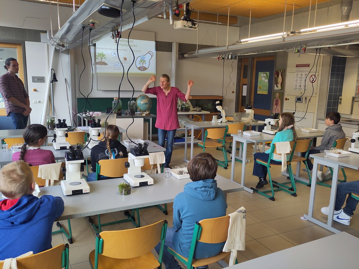 D’Kanner aus dem Cycle 4.1 a 4.2 aus de Gemengen Mamer, Kielen, Habscht, Käerch a Stengefort hunn am Kader vun den LJBM Science Days 2024 e flotten Nomëtteg am Lycée Josy Barthel verbruecht. Ënnert der Uleedung vun den Enseignanten aus dem Departement Biologie an dem Makerspace ass eng Ecosphär, also e Miniatur-Fläschegaart, an enger Luuchtebier ugeluecht ginn. Dës Ecosphär gëtt mat enger LED beliicht.