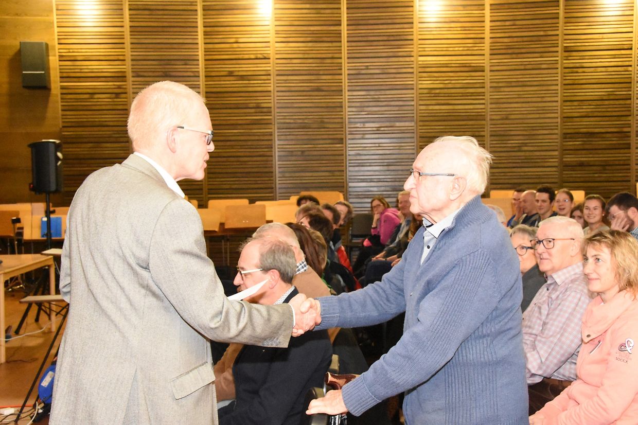 Geehrt wurde an diesem Abend auch Marcel Bourg für seine 75 Jahre unermüdlichen Einsatz im Musikverein. Neben einem Geschenk bekam er auch Standing Ovations von allen Anwesenden.