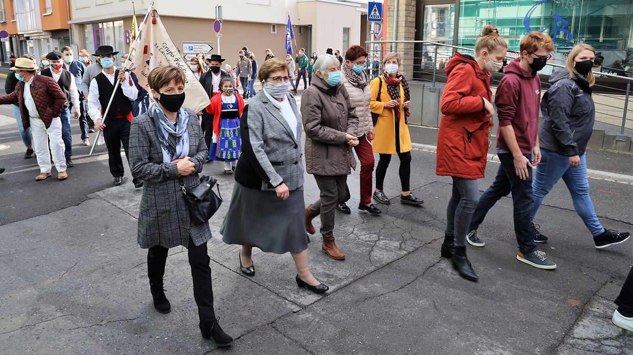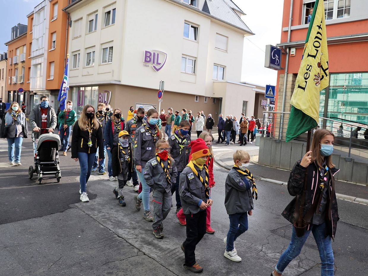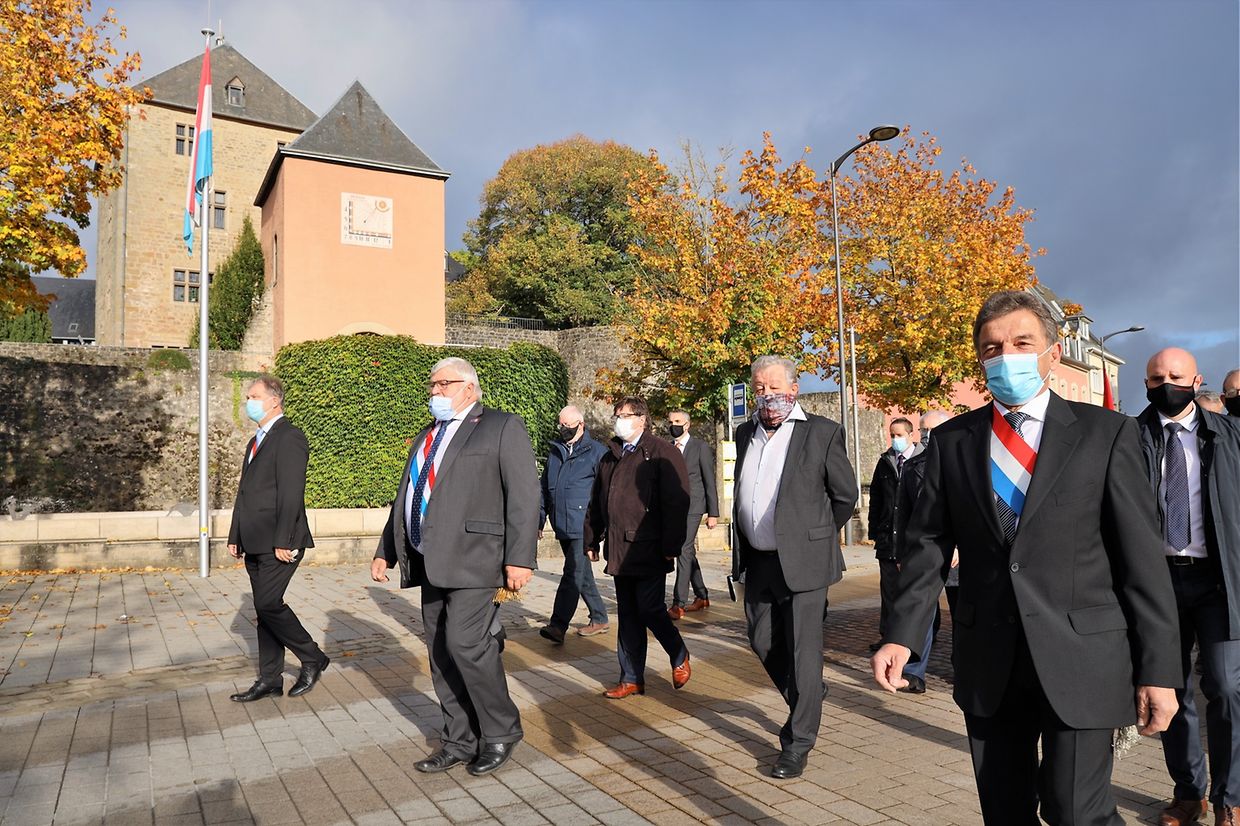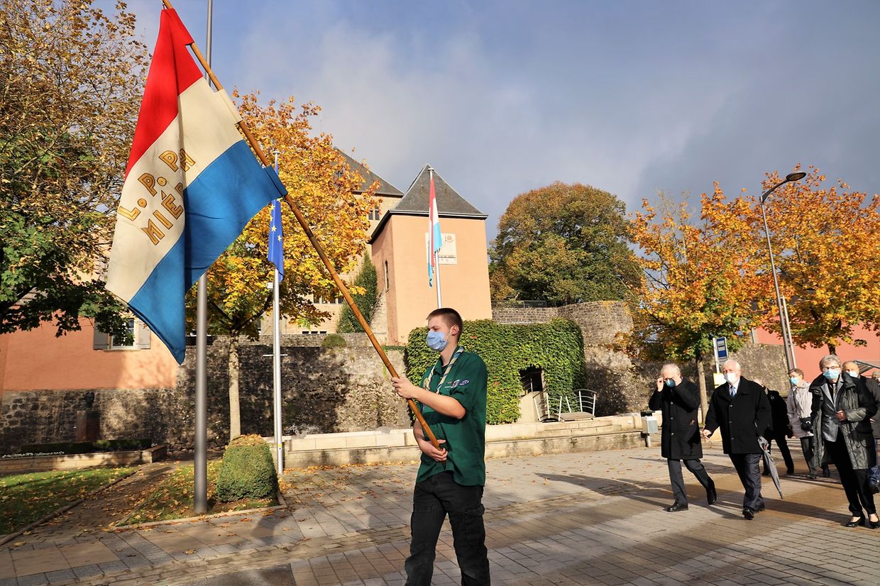 No dem Cortège duerch den Zentrum, hunn de Schäfferot a Vertrieder vun der Ligue Luxembourgeoise des Prisonniers et Déportés Politiques (LPPD) et an den Enrôlés de Force beim Monument aux Morts eng Gerbe niddergeluecht.