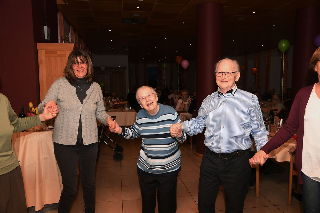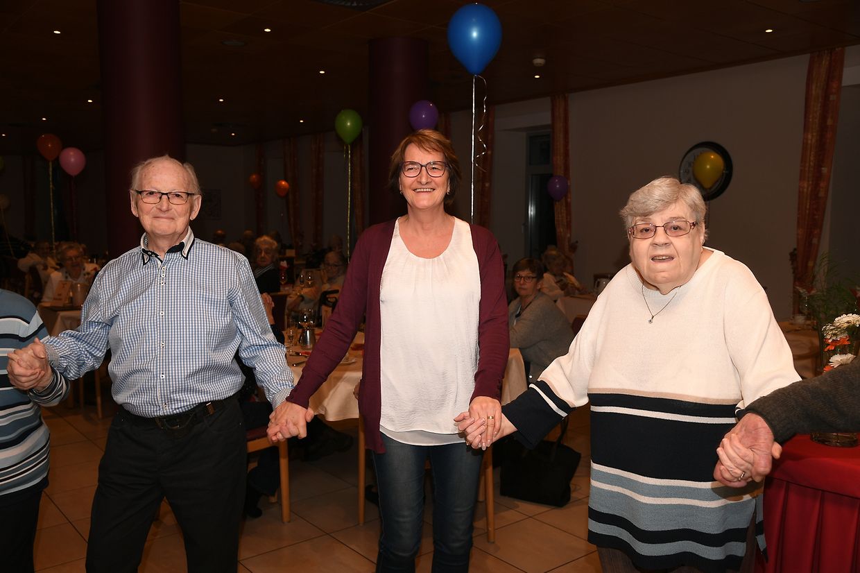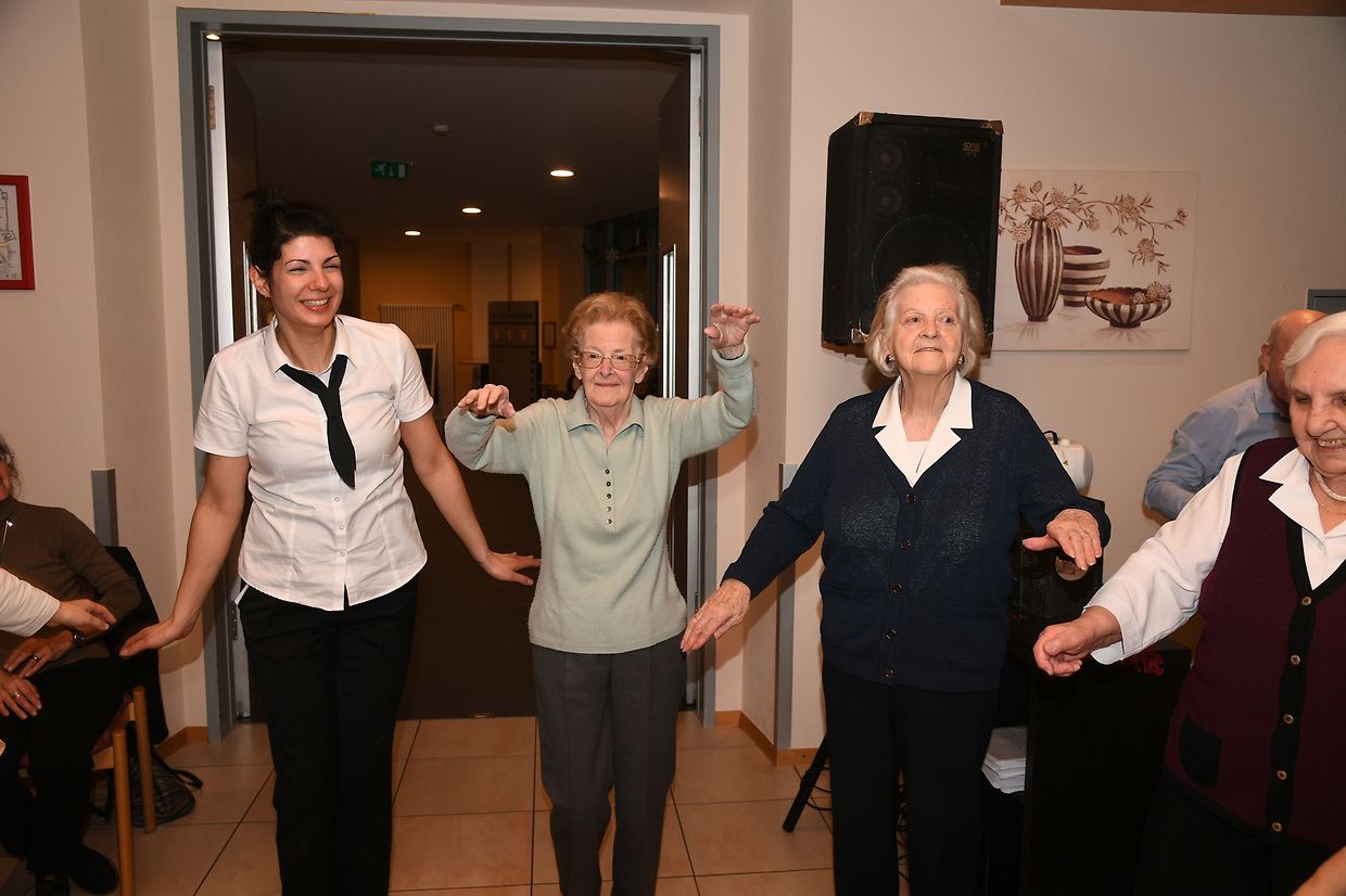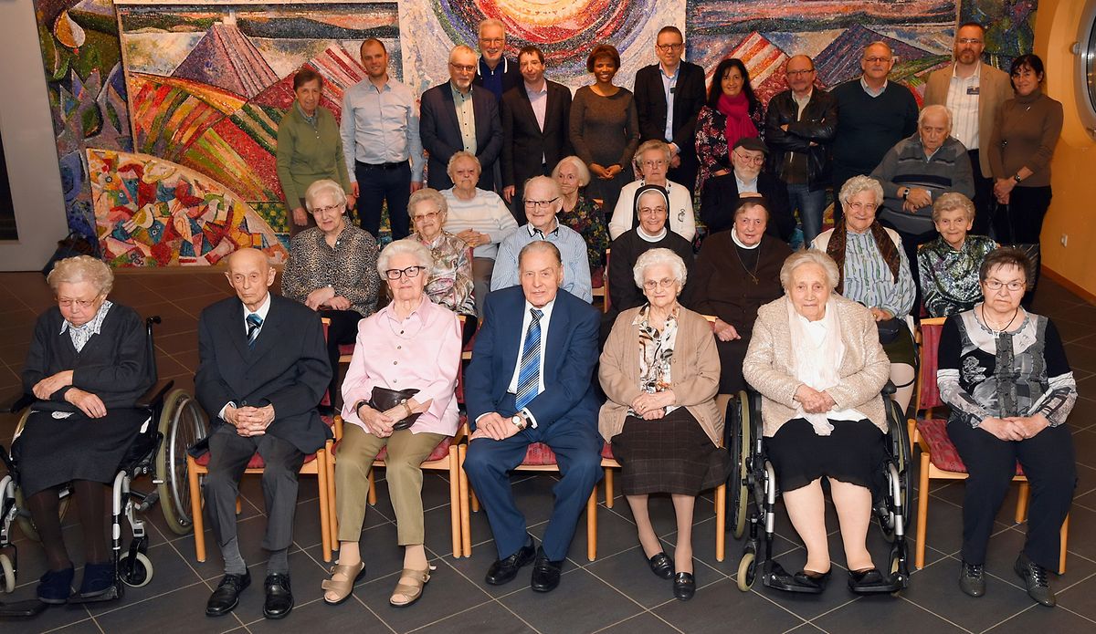 Mersch: Die beliebte Geburtstagsfeier, die jeden dritten Monat im Jahr stattfindet, bereitet den Heimbewohnern des „Home St. Joseph Miersch“ mit ihren Familien auch jedes Mal sehr viel Freude. Anlässlich der ersten Feier dieses Jahres, war es für Direktor René Wirth mit Oberschwester Paule Detampel und seinen Mitarbeitern Michael Hillmer und Nicky Wintringer nach ihren Neujahrswünschen eine besondere Ehre allen 24 Jubilaren die Glückwünsche des Hauses zum Geburtstag zu überbringen. Zu den Gratulanten gehörten ebenfalls die Vertreter der Gemeinden Hëlperknapp, Bissen, Larochette, Colmar-Berg, Mersch und Lintgen mit Claude Mathekowitsch, Jos Schummer und Carlo Mulbach, Natalie Silva und Nico Dhamen, Isabelle Wickler, Christiane Haubrich- Schandler, Henri Krier und Thierry Larsel .Während das Animationsteam mit Entertainer „ Ferdy“ für beste Stimmung im bunt geschmückten Saal Sorge trugen, freuten sich alle über die Rose die ihnen zum Ehrentag geschenkt wurde. Natürlich gehörte das Aufschneiden des großen Geburtstagskuchens zur besonderen Freude dieser Feier bei. Die Geehrten der Monate Oktober bis Januar: Catherine Cornelius-Reckinger (76 Jahre), Maggy Lieffring- Raas (78), Sr. Gabrièle Thull und Joseph Braas (79), Marie- Louise Medernach- Kreintz (83), Jean- Pierre Granelli (84), Hélène Wirth- Salentiny (85), Yvonne Gillen- Brück (86), Frank Spielmann und Roger Hilbert (87), Anna Mertens-Schmitz (88), Albertine Arendt- Monen, Sr. Marie- Remy Eipers und Suzanne David- Hary (91), Nathalie Wampach- Weis und Marie Schroeder- Schiltz (92), Yvonne Greisch- Schroeder, Hélène Lanners- Neumann und Marie Molitor- Bettendorf (93), Marie Parmentier- Baum, Marie Lecomte- Muller und Maria Neu- Neises (94), Jean- Pierre Origer (96) und Françoise Offermann- Kirsch (97). (CR)(FOTOS: CHARLES REISER)