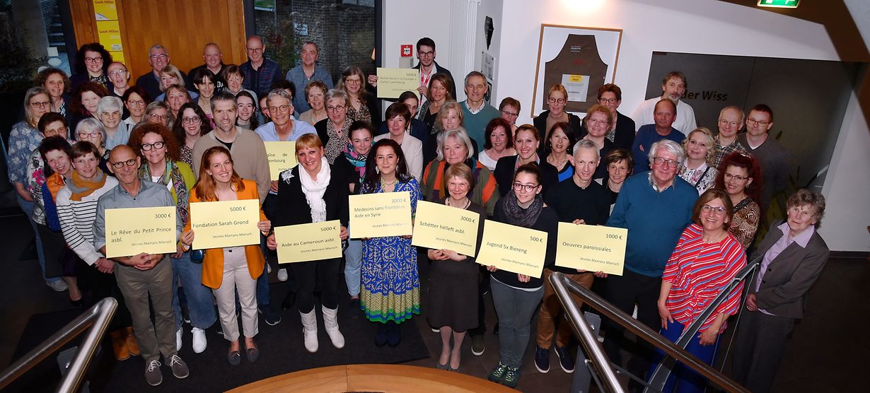 Miersch: De Second Hand Shop vum 2. bis zum 4. März 2023, organiséiert vun de Jeunes Mamans Miersch hat sech erneit gelount. Während denen dräi Deeg waren ganz vill Leit komm, fir sech vun der grousser Auswiel vu Kleeder, Babysaachen, Schung, Poschen , Bicher asw. an der Hal Irbicht zu Biereng eppes passendes zu fairem Präis, eraus ze sichen. Den Erléis vun desem Event konnt deser Deeg am Kader vun enger Feier gläich 9 Schecken am Gesamtwert vun 27 500 Euro u verschidden Associatiounen iwerreecht gin. Am Kader vun der Scheckiwerreechung ass d’Presidentin Sylvie Hames- Nosbusch op de groussen Erfolleg vun der läschter Veranstaltung agaanen, déi zu Biering zwee Mol am Joer stattfënd wou nit manner wéi iwer 60 Leit, benevol ronn 1 200 Stonnen wärend zwou Wochen geschafft hun. Jidderengem, den op irgend eng Art a Weis um Second Hand Shop bedeeligt war, ass och villmols Merci gesoot gin. Folgend Schecken si verdeelt gin: 5000 Euro fir „Fondation Sarah Grond“ vertrueden duerch d‘Laura Franck an Yves Barthels. 5 000 Euro fir „un Bistrot „Le Courage“ konnten d‘Rachel Braun an de Boris Weestemeier an Empfang huelen. Den Dr Luc Schroeder huet sech gefreet fir de Scheck vun 5 000 Euro entgéint ze huelen, den der „Chaîne de l’Espoir Luxembourg“ zugut könnt. „Aide au Cameroun“ kommen deser Vereenegung mam Scheck vun 5 000 Euro zugut, déi dem Chris Genewo iwerreecht goufen. Weider 3 000 Euro hun d’Marie-Paule Max an d’Annemarie Nagel kritt fir „Schëtter hëlleft“ finanziell ze ënnerstëtzen. Merci huet de President Carlo Schiertz gesoot fir de Scheck vun 3 000 Euro, den der Associatioun „ le rêve du petit prince“ zugut könnt. Fir den 1 000 Euro Scheck huun sech de Camille Schroeder an de Lucien Kass besonnësch gefreet, de fir“ d’Oeuvres Paroissiales Miersch“ geduecht ass, grad wéi d’Spiller Ekkip vu 5x Biereng, déi fir de Scheck vu 500 Euro, Merci gesoot hun. Nodeems dat di verschidden Scheckempfänger hir jeweilig Vereenegungen kuurz virgestallt hun , an och Villmols Merci gesoot hun , huet dess bedeitend Scheckiwerreechung a gudder Ambiance hiren würdigen Ofschloss fond.