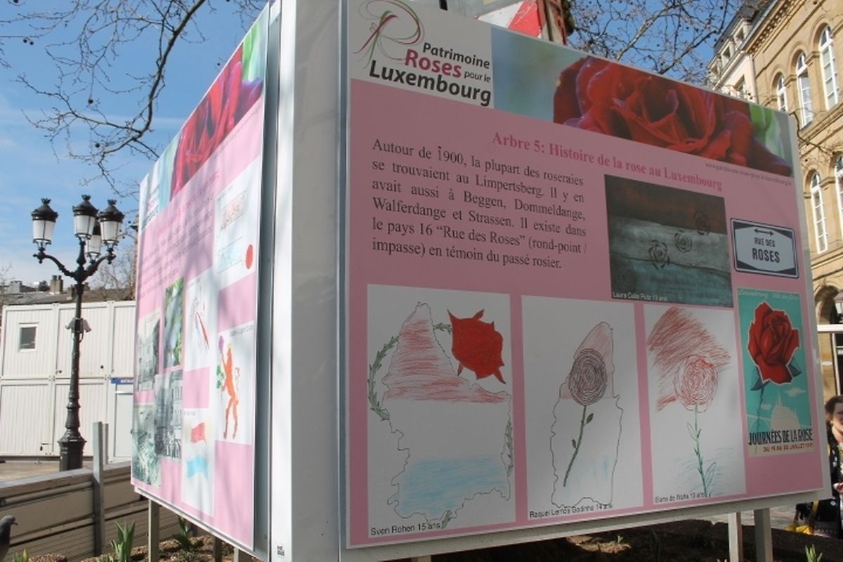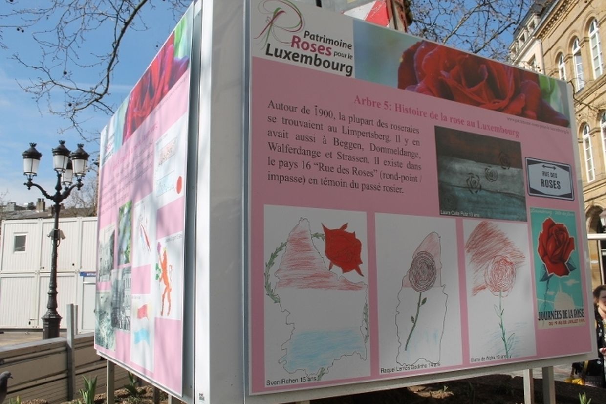 Mardi 2 août, 18h00, Mersch, Parc Communal. Vernissage de l’exposition ‘Le patrimoine rosier du Luxembourg vu par la jeunesse’ en présence de Michel Malherbe, Bourgmestre de Mersch. Exposition thématique rosière de dessins et de documentation sur 24 panneaux. De nombreux enfants et jeunes scolarisés à Mersch avaient participé au concours de dessin lancé par l’ASBL en 2015. Vin d’honneur offert par la Commune de Mersch. Exposition jusqu’en octobre. Visites guidées sur rendez-vous, tél 661-55 20 13 ou contact@patrimoine-roses-pour-le-luxembourg.lu
