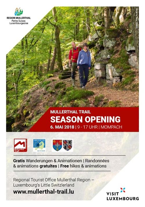 Am Sonntag, den 6. Mai fällt in Mompach mit dem Mullerthal Trail Season Opening der Startschuss für die neue Wandersaison 2018. Die Teilnehmer erwartet ein Tag geprägt durch Bewegung und Spaß an der Natur.