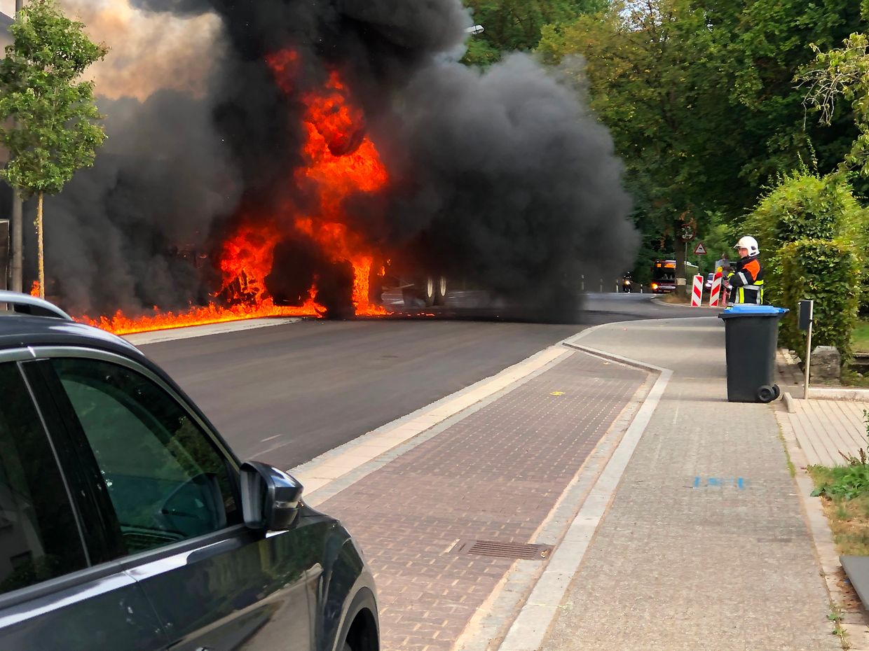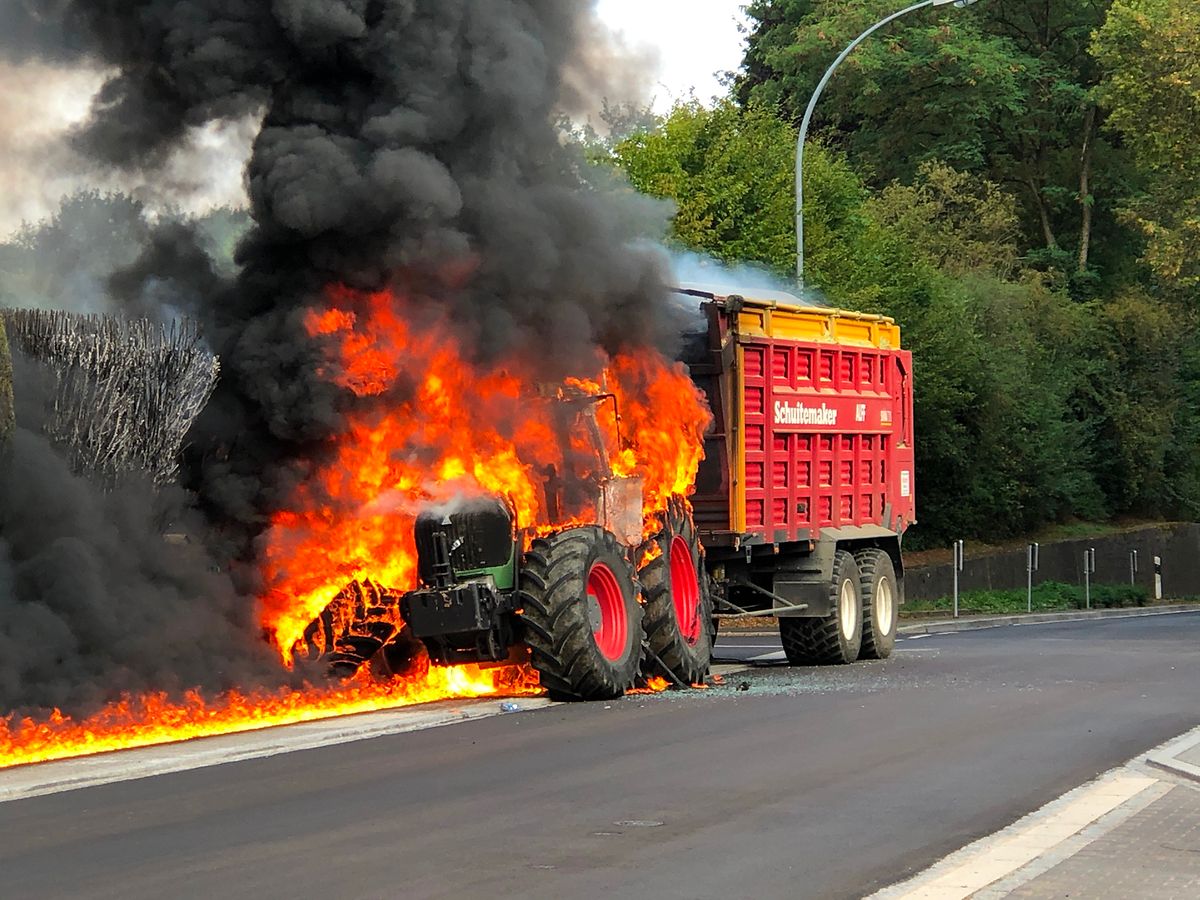 Am späten Nachmittag kam es zu einem Traktorbrand in Moutfort. Der Fahrer versuchte noch den während der Fahrt entstandenen Brand zu löschen, was aber nicht mehr gelang. Bis zum Eintreffen der Feuerwehr brannte der Traktor in vollem Ausmass. Der mit Silomais beladene Hänger sowie ein angrenzendes Wohnhaus konnten vor den Flammen gerettet werden, auch wenn an beiden leichter Schaden entstand. Die Strasse musste für einige Stunden gesperrt werden