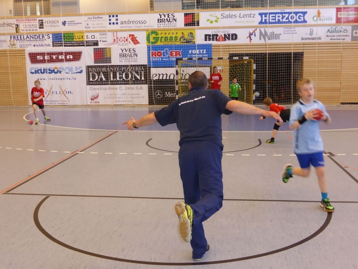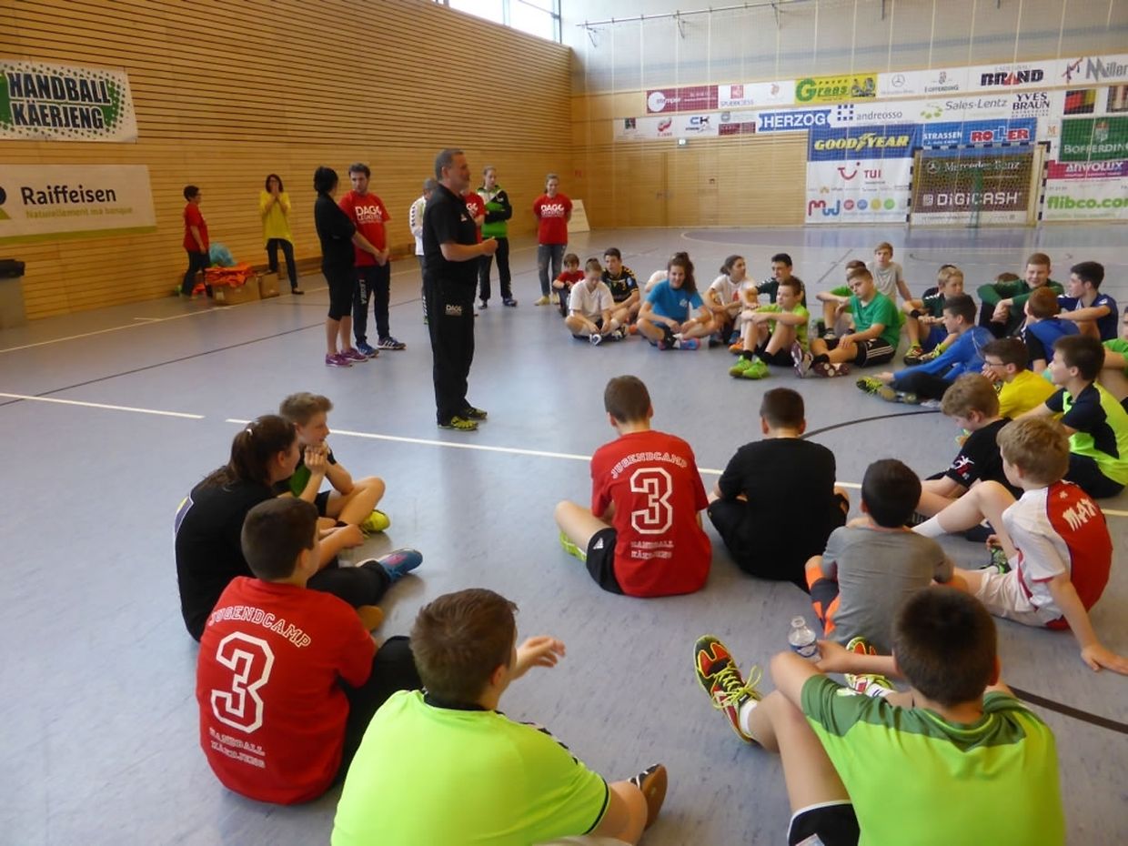 Während 3 Deeg hunn 41 Jongen a Meedercher vum HB Käerjeng an aus 7 anere Veräiner un engem intensiven awer gutt doséierten Trainingsprogramm matgemaach, dat ganzt ënner der Leedung vum Dago Leukefeld mat der Mataarbecht vun de Jugendtrainere vun eisem Veräin. Bei zwou Trainingsunitéite pro Dag, ënnerbrach vun all Dag engem gemeinsame Mëttegiessen, glänzend preparéiert vun der HBK Caterings Equipe (Merci där Dammen), konnten déi jonk Handballbegeeschtert sécherlech villes bäiléieren, besonnesche Wäert gouf dëst Joer op d'Technik an op de "Schlag"-Worf geluecht. Dëst wärt hinnen an nächster Zukunft während hire Mätcher sécherlech weider hëllefen.