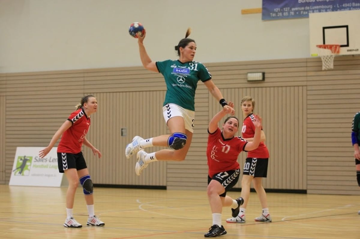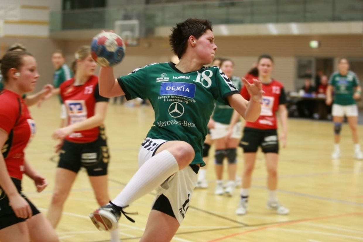 Mannschaft des Roude Léiw : REIS Jessica und SANDUTA Amalia (Tor), THEES Nicole (1), KEVES Renata (4/1), GORAJ Marta (3), MULLER Nathalie (2), PIMENTA Véronique, PAL Oxana (7), ROSSY Jetti (4), WELTER Tina, JANICS Andrea (11/6), coach WEINZIERL Claude.