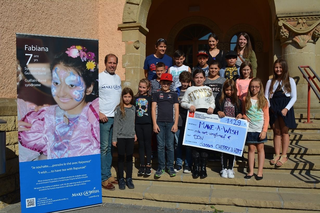 In diesem Sinne spendeten die Schüler an MAKE-A-WISH-Luxembourg und trafen bei der Gelegenheit den Präsidenten, Herrn Hagendoorn, der den interessierten Schülern nebst herzlichsten Danksagungen, auf sympathische Art und Weise Sinn und Zweck der Organisation erklärte. Hierbei erinnerte er daran, dass der Startschuss für MAKE-A-WISH-Luxembourg vor 4 Jahren mit der Erfüllung eines Herzenswunsches auch hier in Niederkorn fiel.