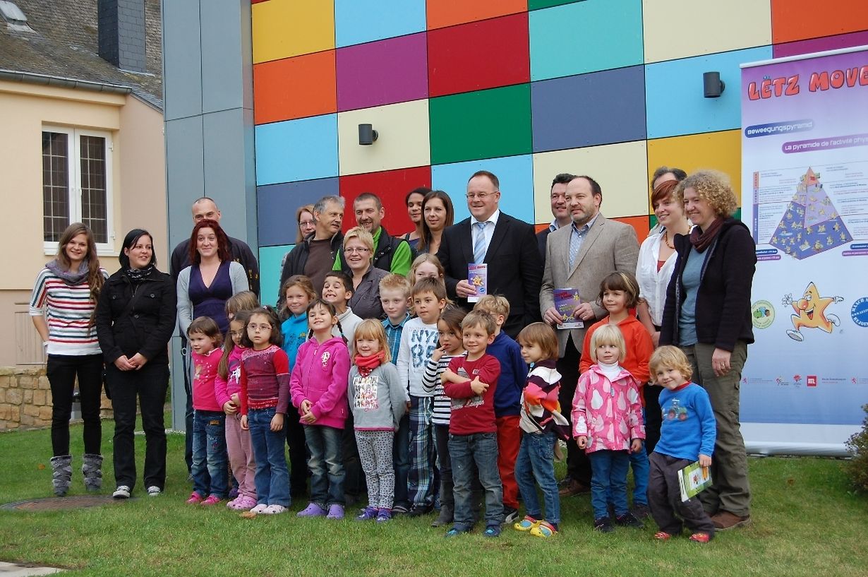 In Anwesenheit von Herrn Romain Schneider, Minister für Sport, der Verantwortlichen der Gemeinde Nommern, der Direktion des Tagesbereichs der Anne asbl, des Personals der Maison Relais Noumer und natürlich auch zahlreicher Eltern und Kindern wurde das Projekt Lëtz Move @ Noumer am 17. Oktober 2012 um 17.00 Uhr in der Maison Relais Noumer vorgestellt.