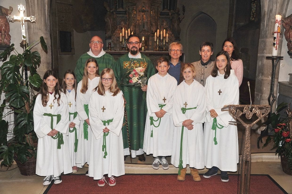 Ospern: Im Rahmen eines feierlichen Gottesdienstes in der Dekanatskirche von Ospern wurde das neue Pastoralteam aus dem Pfarrverband Ospern offiziell vorgestellt. Gleich zu Beginn der Messfeier hieß Dechant Nico Jans, Abbé Patrick Hubert im neuen Pastoralteam, herzlich willkommen. Patrick Hubert, Jahrgang 1973, stammt aus dem Dekanat Echternach, hat Kirchenrecht in Rom studiert und übte das Amt als Kaplan und Seelsorger in verschiedenen Pfarreien aus und war bis zuletzt während drei Jahren als Dechant in Vianden tätig. Seine Hauptaufgabe als Offizialat im Bistum und zugleich Ausbilder der ständigen Diakone wird Patrick Hubert weiterhin nach wie vor während der Woche nachgehen. So wie die Zeit es ihm erlaubt wird er im Dekanat Ospern an den Wochenenden Dechant Nico Jans bei dem Zelebrieren der Messfeiern unterstützen. Dechant Nico Jans wünschte dem ganzen Pastoralteam mit seinem neuen Geistlichen Patrick Hubert für die Zukunft eine gute Zusammenarbeit. Patrick Hubert bedankte sich für den herzlichen Empfang und versprach sein Bestes zu geben und sich auf den Glaubensweg mit der christlichen Gemeinschaft zu begeben. Das Pastoralteam im zukünftigen Pfarrverband Ospern-Grosbous-Beckerich-Useldingen, dem insgesamt 18 Pfarreien und 15 Filialen angegliedert sind, setzt sich wie folgt zusammen: Nico Jans, (Dechant), Mathieu Janssen, (Pfarrer), Patrick Hubert, (Subsidiar), Robert Diederich, (Pfarrassistent) sowie die beiden Pfarrsekretärinnen Michèle Asseray und Carole Cesar. (TEXT/FOTOS: CHARLES REISER)