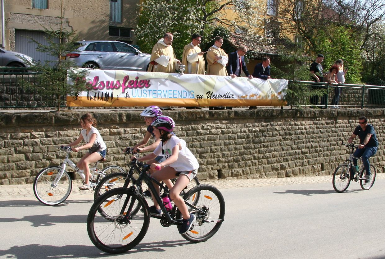 Seit über 300 Jahren steht der Ostermontag in Osweiler ganz im Zeichen der Celsustradition. Nach einem feierlichen Hochamt zu Ehren des heiligen Celsus, des zweiten Patrons der Osweiler Kirche, spendete der Festprediger Abbé Claude Bache, Dechant des Dekanats Osten, assistiert von seinen geistlichen Mitbrüdern Luc Schreiner und Jacques Bruns, den Celsussegen. Trotz der Behinderung durch Kanalisationsarbeiten in der Dorfstraße defilierten zahlreiche Kinder und Erwachsene vor der Kirche, um ihre Fahrräder, Pferde, Traktoren, Autos und andere Fahrzeuge unter den Schutz des Pferde- und Bauernheiligen zu stellen.