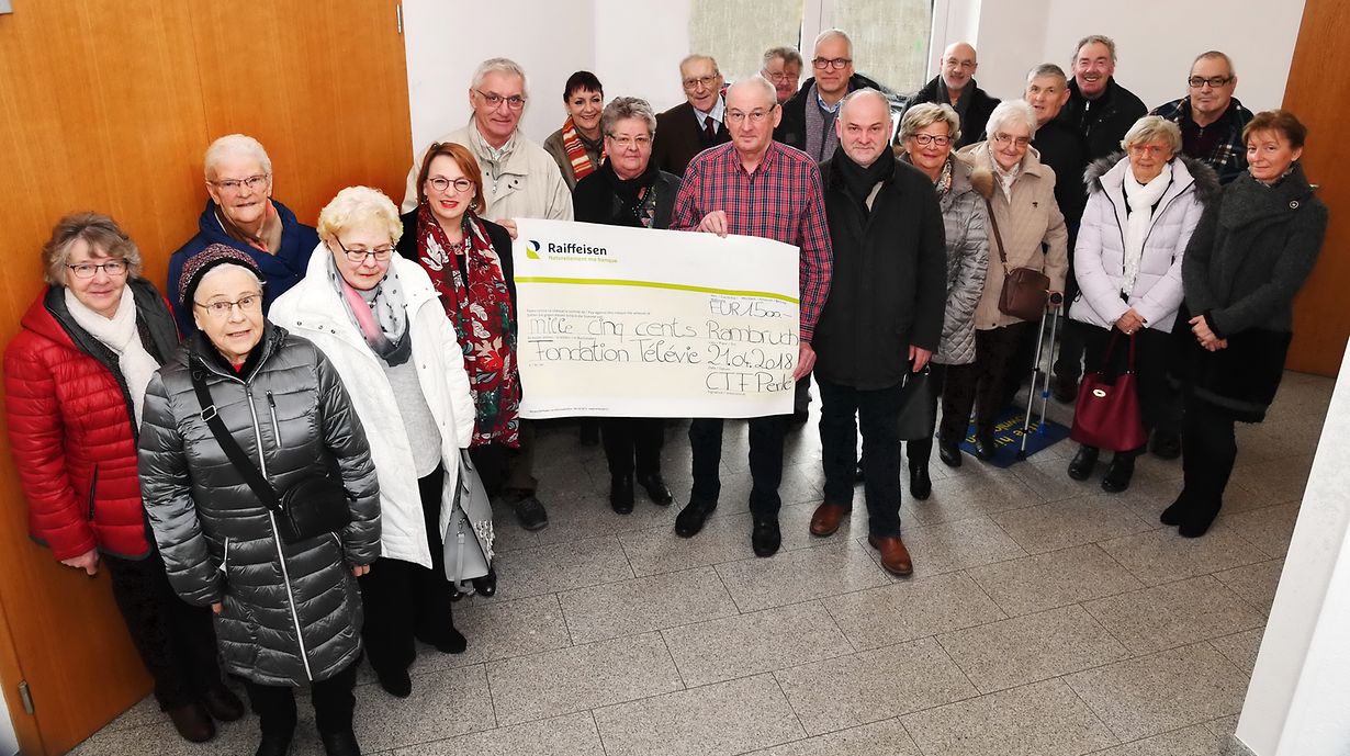 Perlé: Mit 84 Vereins- und fünf Vorstandsmitgliedern kämpft die CTF- Sektion „Amis de la Fleur Perlé“ mit aller Kraft ums Überleben. So ging es auch ganz zügig mit der Tagesordnung anlässlich der diesjährigen Generalversammlung am Sonntag, den 27. Januar zu, die kurz im Anschluss an eine Gedenkminute von Vizepräsident Roby Michels eröffnet wurde. Berthy Schroeder- Schmitz erinnerte an den Ausflug nach Mettlach und Losheim, die Erhebung der Mitgliederbeiträge sowie an die Schecküberreichung die im vergangenen Jahr getätigt wurden. Der Finanzbericht wies dennoch eine gute Kassenlage auf. Auf dem Programm für 2019 steht nur ein Ausflug zusammen mit der Amicale der Feuerwehren Perlé und Wolvelingen zum „ village des vieux métiers in Azannes (F). Der Abschluss der Versammlung bildete die Verleihung von CTF- Verbandsabzeichen. Bronze erhielt: Jean- Paul Leick. Das Silberabzeichen konnten Marc Wanderscheid und Remy Zigrand in Empfang nehmen. Folgende Mitglieder oder Familien die der Versammlung nicht beiwohnten, werden ihr Abzeichen zu einem späteren Zeitpunkt erhalten: Bronze: Donat- Schomer, Ginette Knoop, Majerus-Simon, Yves Rommes, Schlottert- Welter und Philippe Van Den Abeel. Silber: Paul Claude, Gillet- Izzi, Hipp- Speidel, Kintzle- Mertz, Christian Leick und Pierre Hoffmann. Gold: Fr.Klein- Linster, Lamborelle- Schwartz und Linden- Kieffer. Bereits am Vormittag zelebrierte Pfarrer Marcel Grethen einen Gottesdienst in der Kirche von Perlé für alle Lebenden und bereits verstorbenen Mitglieder in dessen Verlauf, Blumen vor dem Altar niedergelegt wurden. Da keine neue Kandidatur für den Vorstand vorlag, wird die Sektion Perlé weiterhin geführt werden von Roby Michels (Vizepräsident), Berthy Schroeder- Schmitz (Sekretärin und Kassiererin). Sonja Kettmann, Nadine Rech und Nicky Speidel (beisitzende Mitglieder). Der Scheck über 1 500 Euro konnte bereits der Aktion „ Télévie“ zugutekommen. (CR) FOTO: CHARLES REISER)