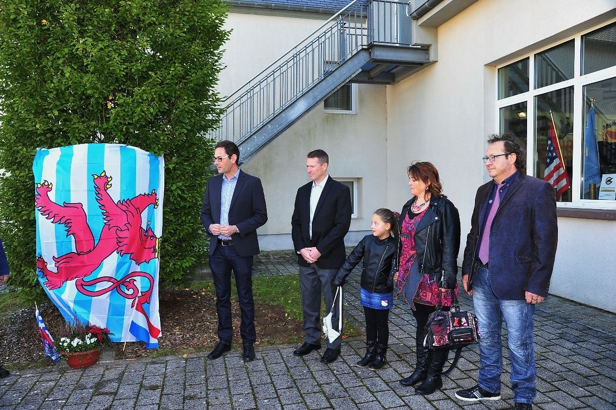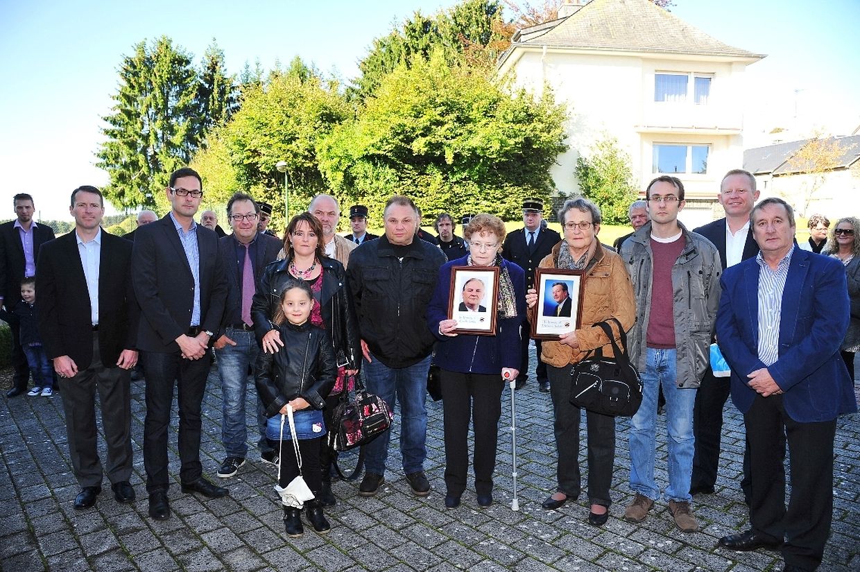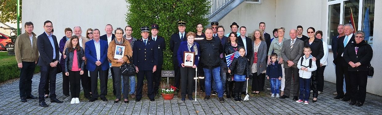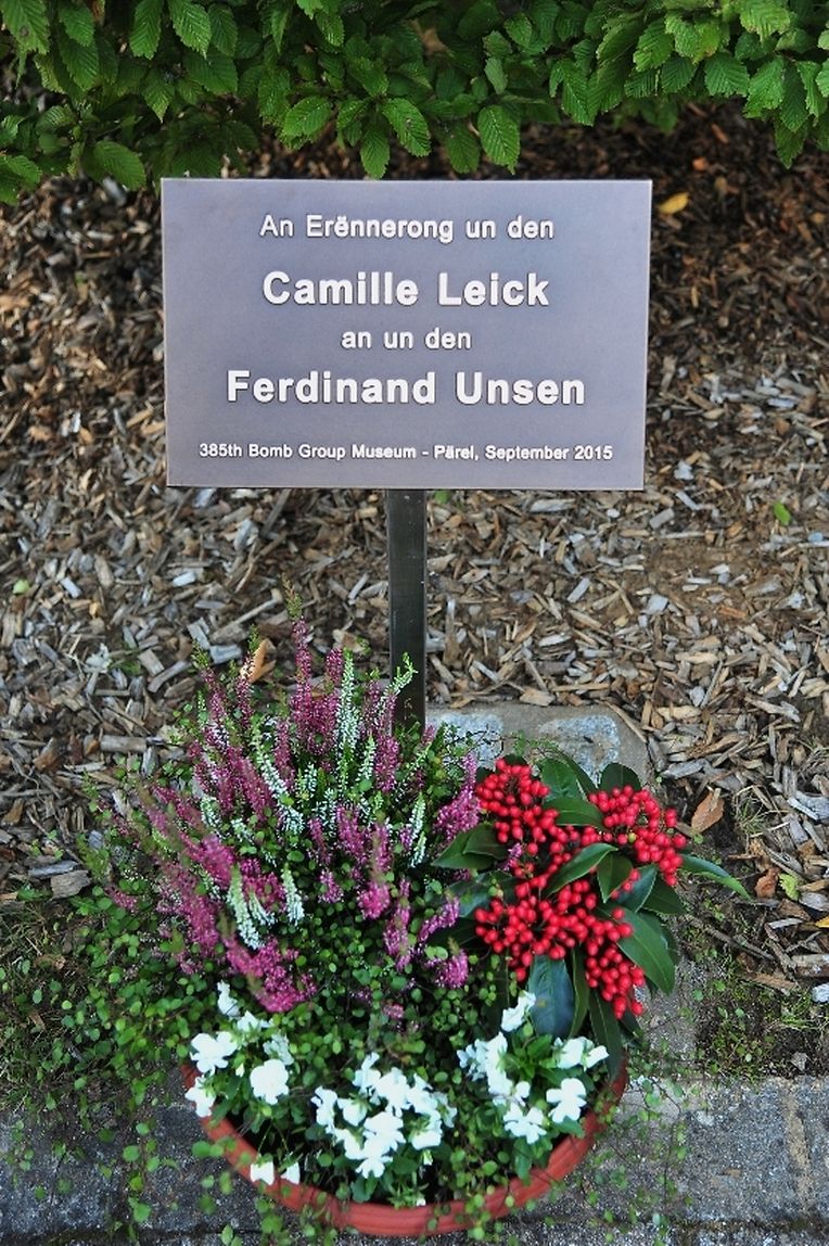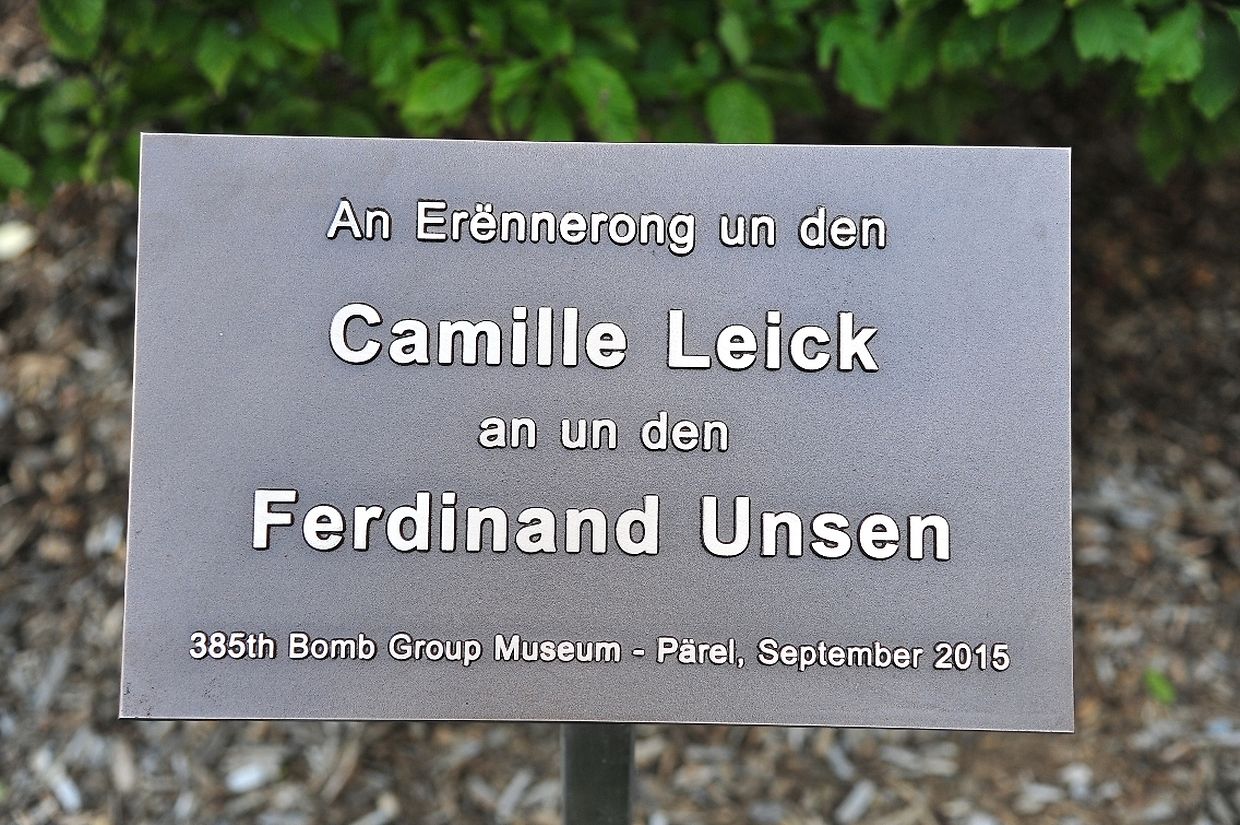 Perlé: Seit Juni 1998 besteht das „ 385th Bomb Group Memorial Museum Perlé“ , das von einigen motivierten Sammlern von Militärgegenständen aus dem zweiten Weltkrieg zu einem ganz interessanten und innovativen Museum eingerichtet wurde. Auch Camille Leick aus Perlé und Ferd Unsen aus Eschette gehörten zu den Gründungsmitgliedern und beide waren von Anfang an, auch im Vorstand vertreten. Dabei setzte sich Ferd Unsen, ebenfalls, als ehemaliger Bürgermeister der Gemeinde Rambrouch voll und ganz für das Museum in Perlé ein. Um beiden kürzlich verstorbenen Pionieren alle Ehre zu erweisen kamen die Verantwortlichen zum Entschluss ihnen eine Erinnerungstafel als Huldigung gleich vor dem Haupteingang des Museums zu errichten. Anlässlich des Tages der offenen Tür, am Sonntag, den 27. September, bot sich neulich die beste Gelegenheit in einem sympathischen Gedenkakt und im Beisein der Familienmitglieder, Freunden, Vorstandsmitglieder und Ehrengästen die Erinnerungstafel zu enthüllen. Wegen der ganz engen Beziehungen mit amerikanischen Militärfreunden hatten Joseph Mc Fall, Kommandant und Steven Horton, beigeordneter Kommandant des 52th Fighter Wing Vision US Luftwaffen- Stützpunktes aus Spangdahlem, mit ihren Ehefrauen ebenfalls darauf bestanden bei dieser Zeremonie dabei zu sein. Fränk Melchior , derzeitiger Museums- Vorsitzender und Bürgermeister Toni Rodesch würdigten in ihren jeweiligen Ansprachen das uneigennützige Engagement von Camille Leick und Ferd Unsen, die ganz motiviert und sich stets mit Herz und Seele voll und ganz für das Museum in Perlé einsetzten. Beiden sei man heute zu großem Dank verpflichtet. Zum Abschluss der Feier wurden die Ehefrauen der beiden Pioniere je ein Portrait ihrer unvergessenen Ehegatten überreicht. (CR)(FOTOS: CHARLES REISER)