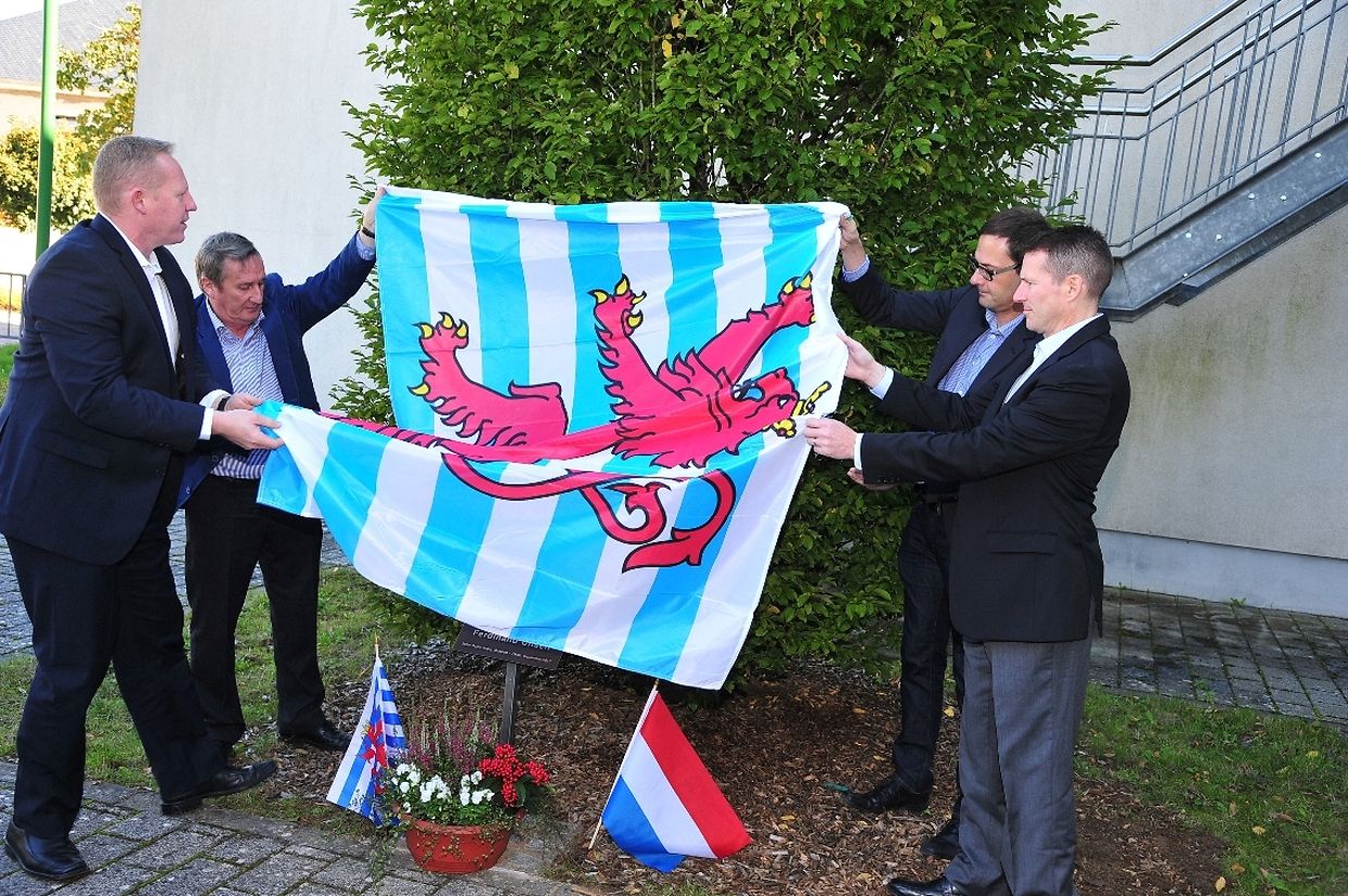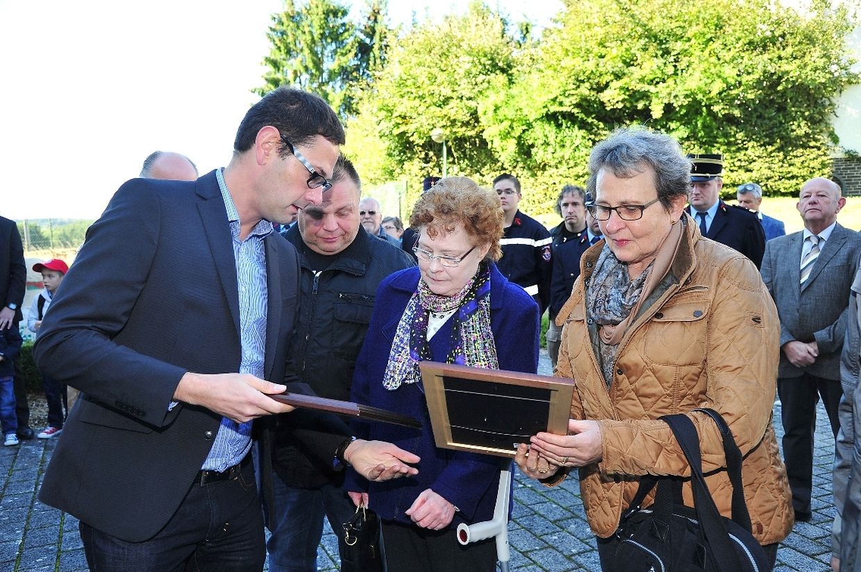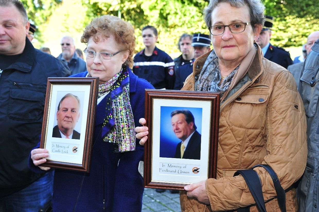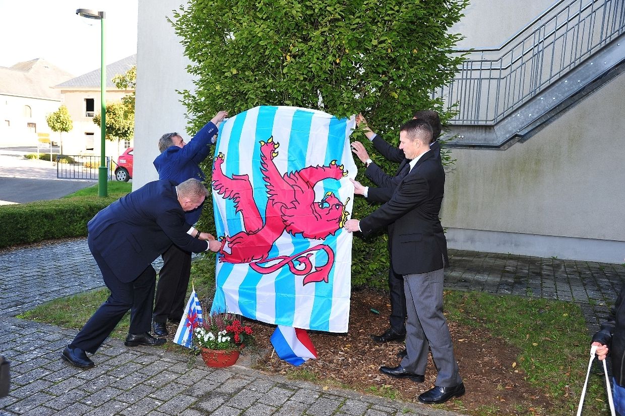 Perlé: Seit Juni 1998 besteht das „ 385th Bomb Group Memorial Museum Perlé“ , das von einigen motivierten Sammlern von Militärgegenständen aus dem zweiten Weltkrieg zu einem ganz interessanten und innovativen Museum eingerichtet wurde. Auch Camille Leick aus Perlé und Ferd Unsen aus Eschette gehörten zu den Gründungsmitgliedern und beide waren von Anfang an, auch im Vorstand vertreten. Dabei setzte sich Ferd Unsen, ebenfalls, als ehemaliger Bürgermeister der Gemeinde Rambrouch voll und ganz für das Museum in Perlé ein. Um beiden kürzlich verstorbenen Pionieren alle Ehre zu erweisen kamen die Verantwortlichen zum Entschluss ihnen eine Erinnerungstafel als Huldigung gleich vor dem Haupteingang des Museums zu errichten. Anlässlich des Tages der offenen Tür, am Sonntag, den 27. September, bot sich neulich die beste Gelegenheit in einem sympathischen Gedenkakt und im Beisein der Familienmitglieder, Freunden, Vorstandsmitglieder und Ehrengästen die Erinnerungstafel zu enthüllen. Wegen der ganz engen Beziehungen mit amerikanischen Militärfreunden hatten Joseph Mc Fall, Kommandant und Steven Horton, beigeordneter Kommandant des 52th Fighter Wing Vision US Luftwaffen- Stützpunktes aus Spangdahlem, mit ihren Ehefrauen ebenfalls darauf bestanden bei dieser Zeremonie dabei zu sein. Fränk Melchior , derzeitiger Museums- Vorsitzender und Bürgermeister Toni Rodesch würdigten in ihren jeweiligen Ansprachen das uneigennützige Engagement von Camille Leick und Ferd Unsen, die ganz motiviert und sich stets mit Herz und Seele voll und ganz für das Museum in Perlé einsetzten. Beiden sei man heute zu großem Dank verpflichtet. Zum Abschluss der Feier wurden die Ehefrauen der beiden Pioniere je ein Portrait ihrer unvergessenen Ehegatten überreicht. (CR)(FOTOS: CHARLES REISER)