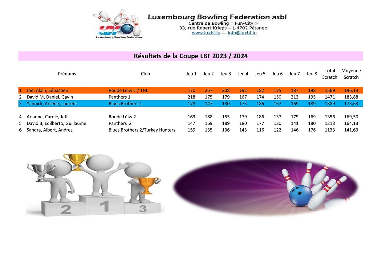 Pétange LBF - Coupe LBF 2023/2024 Luxembourg Bowling Federation 2 Galerie d'images Faites défiler la page vers le bas pour voir plus d'images. Publié le jeudi 4 juillet 2024 à 22:44 Petingen, Luxemburg Resultater vun der Coupe LBF 2023/2024 Weider Info'en op www.luxbf.lu Signaler contenu inapproprié Plus de nouvelles de Luxembourg Bowling Federation > LBF - Tour 2 vum Championnat Doublette 2024/2025 16/12/24 Pétange LBF - Tour 4 vum SWCC 2024/2025 09/12/24 Pétange LBF - Tour 1 du Championnat Doublette 2024/2025 01/12/24 Pétange LBF - Resultater vum Fun-Turnéier 9 No-Tap 23/11/24 Pétange LBF - Tour 3 vum SWCC 2024/2025 18/11/24 Pétange