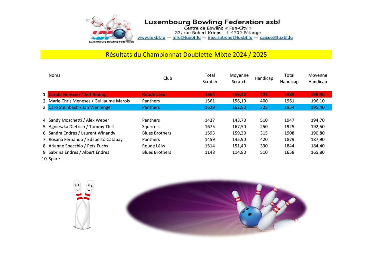 Pétange LBF - Doublette Mixte 2024/2025 Luxembourg Bowling Federation 2 Galerie d'images Faites défiler la page vers le bas pour voir plus d'images. Publié le vendredi 11 octobre 2024 à 15:22 Petingen, Luxemburg Resultater vun der Doublette Mixte 2024/2025 Weider Info'en op www.luxbf.lu Signaler contenu inapproprié Plus de nouvelles de Luxembourg Bowling Federation > LBF - Tour 2 vum Championnat Doublette 2024/2025 16/12/24 Pétange LBF - Tour 4 vum SWCC 2024/2025 09/12/24 Pétange LBF - Tour 1 du Championnat Doublette 2024/2025 01/12/24 Pétange LBF - Resultater vum Fun-Turnéier 9 No-Tap 23/11/24 Pétange LBF - Tour 3 vum SWCC 2024/2025 18/11/24 Pétange