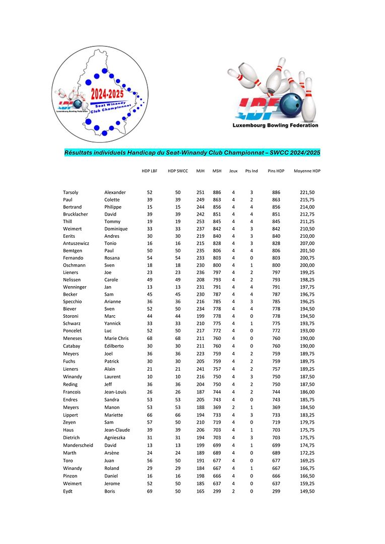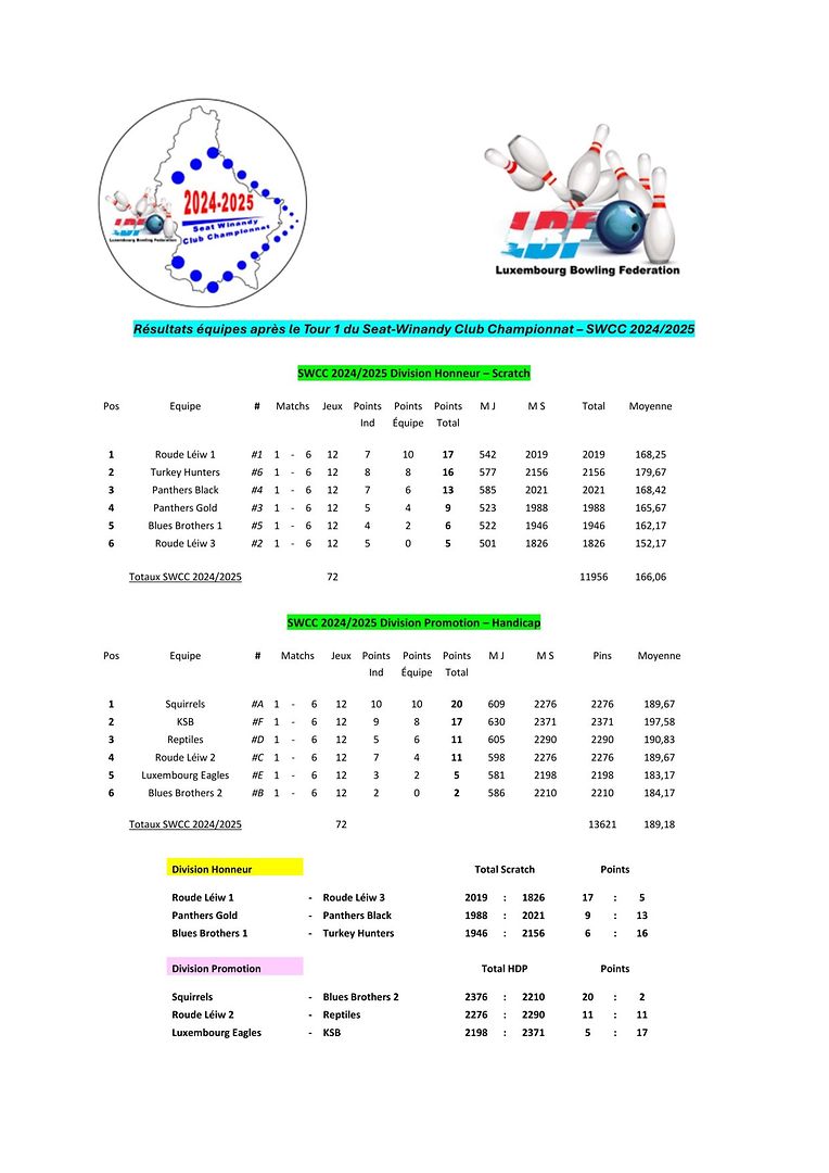 Pétange LBF - Tour 1 vum SWCC 2024/2025 Luxembourg Bowling Federation 4 Galerie d'images Faites défiler la page vers le bas pour voir plus d'images. Publié le lundi 7 octobre 2024 à 21:15 Petingen, Luxemburg Resultater vum éischten Tour vum Seat-Winandy Club-Championnat 2024/2025 Signaler contenu inapproprié Plus de nouvelles de Luxembourg Bowling Federation > LBF - Tour 2 vum Championnat Doublette 2024/2025 16/12/24 Pétange LBF - Tour 4 vum SWCC 2024/2025 09/12/24 Pétange LBF - Tour 1 du Championnat Doublette 2024/2025 01/12/24 Pétange LBF - Resultater vum Fun-Turnéier 9 No-Tap 23/11/24 Pétange LBF - Tour 3 vum SWCC 2024/2025 18/11/24 Pétange
