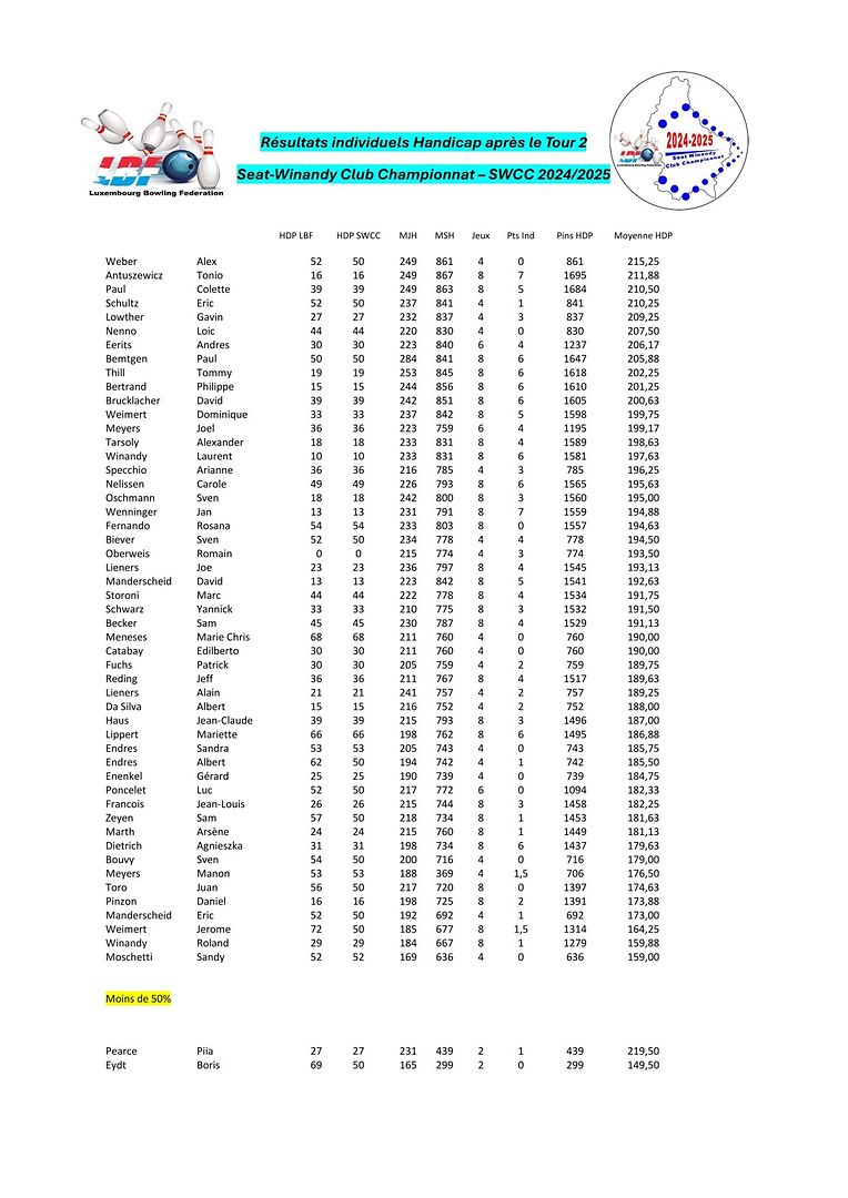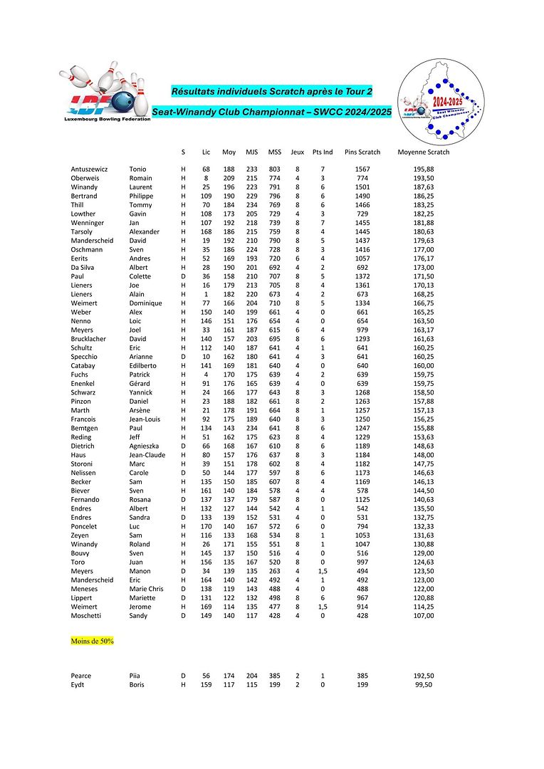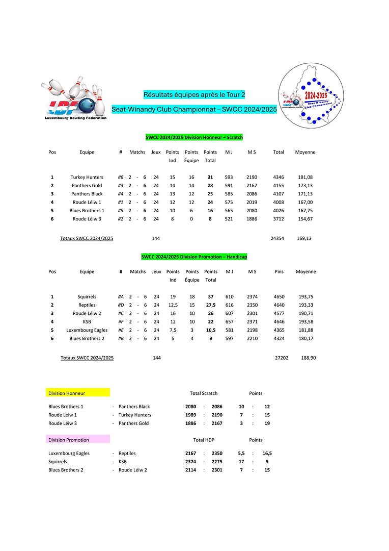 Pétange LBF - Tour 2 vum SWCC 2024/2025 Luxembourg Bowling Federation 4 Galerie d'images Faites défiler la page vers le bas pour voir plus d'images. Publié le dimanche 20 octobre 2024 à 20:21 Petingen, Luxemburg Resulater vum Tour 2 vum SWCC 2024/2025 Weider Info'en op www.luxbf.lu Signaler contenu inapproprié Plus de nouvelles de Luxembourg Bowling Federation > LBF - Tour 2 vum Championnat Doublette 2024/2025 16/12/24 Pétange LBF - Tour 4 vum SWCC 2024/2025 09/12/24 Pétange LBF - Tour 1 du Championnat Doublette 2024/2025 01/12/24 Pétange LBF - Resultater vum Fun-Turnéier 9 No-Tap 23/11/24 Pétange LBF - Tour 3 vum SWCC 2024/2025 18/11/24 Pétange