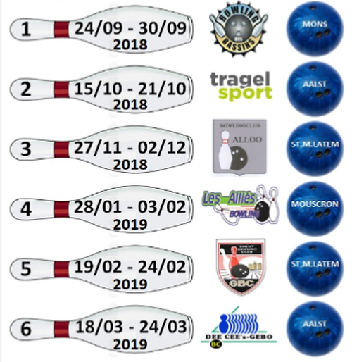A chaque tournoi il y a des points à gagner sur la participation et résultats obtenus afin d’être qualifié pour la grande finale de clôture prévue le 5.05.2019 au Bowling de Tragel à Aalst. Les 5 meilleurs résultats sur les 6 tournois seront pris en considération, et sur 3 catégories différentes seront qualifiés chaque fois les 16 meilleurs.