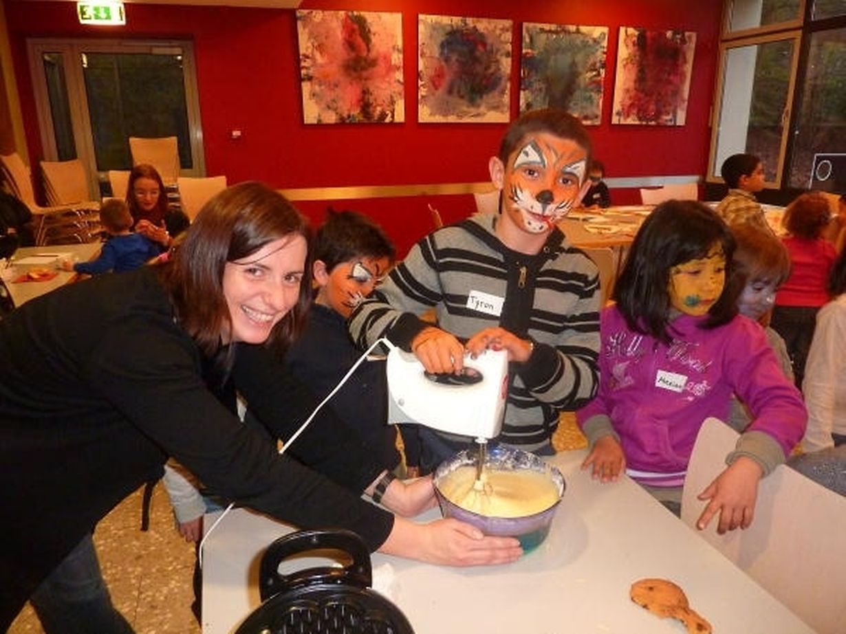 60 Kinder wurden von einem Schneemann begrüßt und konnten verschiedene Workshops besuchen. Alle haben beim Zubereiten des Teigs fleißig geholfen, selbstgebackene Waffeln schmecken doch am besten!