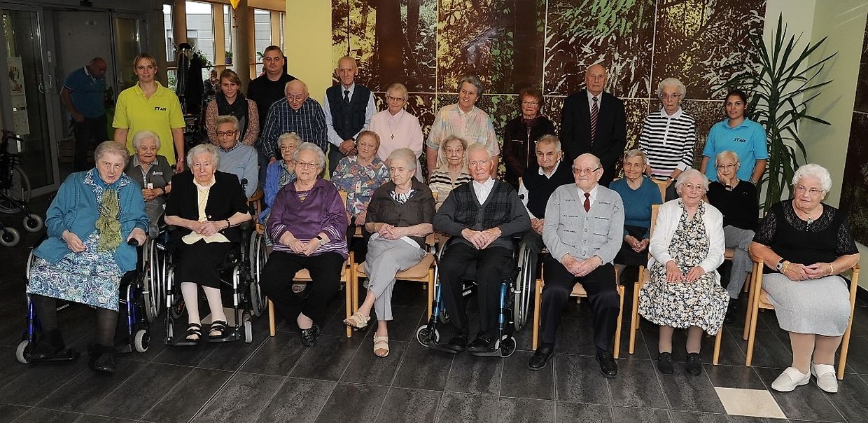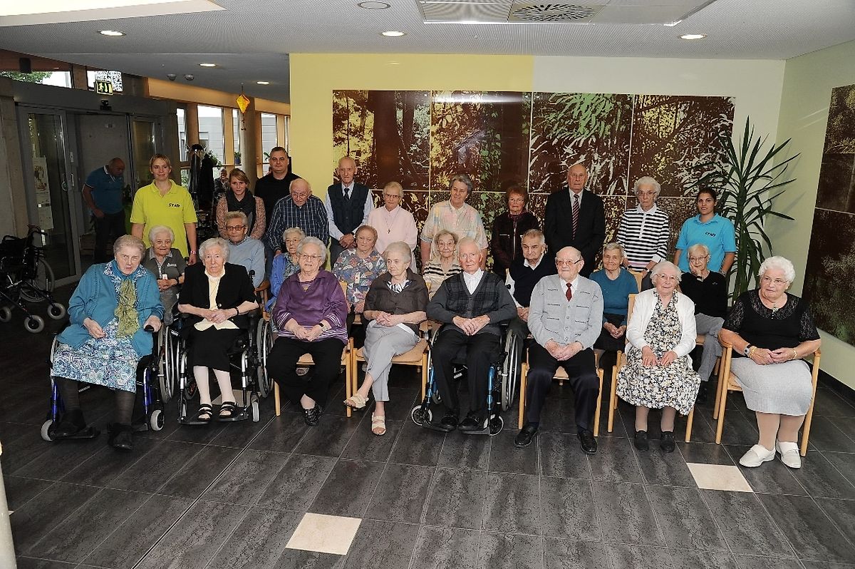 Die beliebte Tradition gleich vier Mal im Jahr, die Bewohner des „ Home pour personnes agées“ zu ihrem Geburtstag zu ehren, wurde dieser Tage in Redingen aufs Neue weitergeführt. Insgesamt 23 Jubilare die in den Monaten Juli, August und September das Licht der Welt erblickten, konnten die Glückwünsche stellvertretend für die ganze Belegschaft im Namen der Direktion um Christian Ensch mit seinem Team entgegennehmen. Für die nötige Unterhaltung und für die Überreichung von Rosen und Geschenken an die Geburtstagskinder, sorgte das Animationsteam mit Joëlle und Sandrina, während Entertainer „ Ferdy“ mit flotter Tanzmusik aufspielte. Gefeiert wurde mit den Familienangehörigen bei Sekt, Kaffee und einem Stück des großen Geburtstagskuchens, so dass den ganzen Nachmittag über auch keine Langeweile aufkam. Die Jubilare des Monats Juli: Marie Weber Zacharias ( 87 Jahre), Julie Boden- Claude (86), Georges Majerus (89), Joseph Loues (87), Anne- Pauline Klopp-Everard (91), Emilie Thoma-Wiltgen (86) und Margot Büchler-Poncelet (90). Monat August: Jeanne Dax- Kayser (92), Léon Goergen (85), Jean Thill (88), Liliane Hennicot (70), Pierre Schmit (76), Nelly Neuberg-Frank ( 76), Agnes Moris- Hengen ( 88), Johanna Frank- Witberg ( 92), Schwester Aurelia Mores ( 78) und Lucien Hoffmann ( 91). Monat September: Colette Majerus- Frisch ( 82), Germaine Loor- Weicker (90), Cécile Kayser- Schmit (85), Léon Weber (83), Nathalie Kowalyszyn-Moroz (87) und Elise Sccacki- Wagner (84). (TEXT/FOTO: CHARLES REISER)