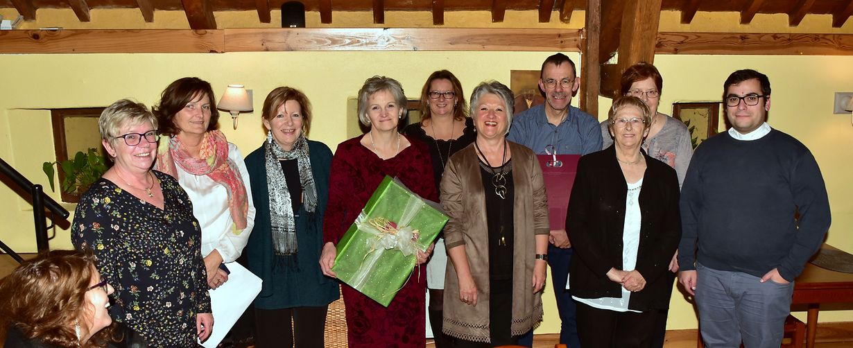 An eiser Chorale hu mir dëst Joer op eiser Cäciliefeier eis laangjäreg Sängerin , d'Madame Thérèse Decker-Gratz geéiert. Si krut fir 10 Joer treit Sangen d' Bronze Pius-Medaille vun eiser Vice-Presidentin Triny Larosch ugespéngelt. Desweideren hu mir eiser Dirigentin, der Madame Josette Ourth, sou wéi eisem Organist Carlo Philippe als Merci fir di gutt Zesummenaarbecht , e schéine Cadeau iwwerreecht.