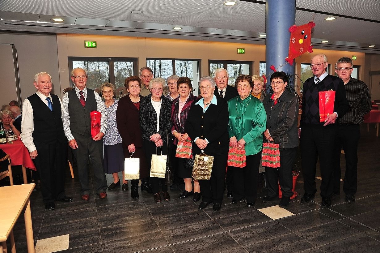 Unter dem Motto: Erwartungen, Kommunikation und Wertschätzung der älteren Generation" , fand die diesjährige Weihnachtsfeier organisiert von den "Frënn vum 3. Alter Réiden/ Atert" erneut wie gewohnt am Anfang der Adventszeit im " home pour personnes agées" in Redingen statt. Präsident Jengi Schaus zeigte sich erfreut über die Vielzahl von Senioren die der diesjährigen Einladung zu dieser besinnlichen Feier gefolgt waren und wünschte allen Anwesenden besinnliche Feiertage. Im Anschluss an die Geschenküberreichungen wünschte er allen Geburtstagskindern, dass sie noch recht viele Jahre im Redinger Seniorenverein verbringen können. Die Geehrten: Alice Bock, Maria Georgen, Josée Schleich- Gloesener, Georgette Pickard, Arsène Pletgen, Mme. Sabus- Muller ( 75 Jahre), Yvonne Graf, Suzanne Kerger, Marguerite Kieffer und Anne Schaus- Trierweiler ( 80), Albert Ries und Robert Thilmany ( 85). ( Text/ Foto: Charles Reiser)