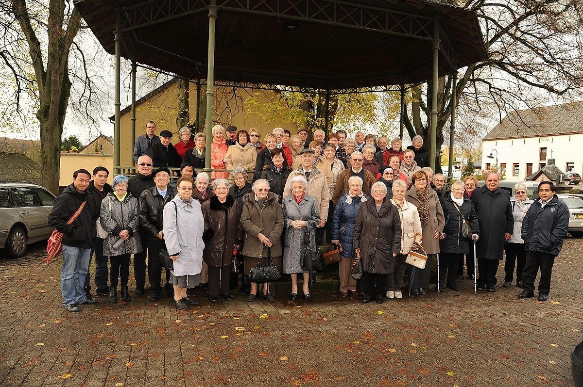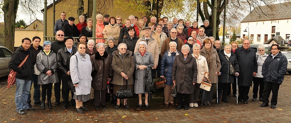Seit 1963 organisiert „ Voyages Unsen“ aus Eschette regelmäßig Pilgerreisen nach Lourdes und dies seit Anfang von 1990 sogar dreimal pro Jahr. Damit gelangen jährlich über 100 Gläubige mit dem Busunterunternehmen zur Pilgerstätte. Ein Teil der Pilger trifft sich auch danach gerne wieder, um die geknüpften Bekanntschaften wieder aufzufrischen. Das diesjährige Treffen fand neulich unter dem Impuls von Rosa Pletschette- Wolter in Zusammenarbeit mit Voyages Unsen in Redingen/ Attert statt. So nahmen auch zahlreiche Wahlfahrer am feierlichen Gottesdienst in der festlich geschmückten Redinger Pfarrkirche teil, die von Pater Gérard Schumacher und Redemptorist Raoul Peralta konzelebriert und musikalisch vom lokalen Gesangverein mit Carlo Philippe an der Orgel auch verschönert wurde. Am Ende des Gottesdienstes bedankte sich Rosa Pletschette bei allen Anwesenden sowie beim Busunternehmen Unsen für die rege Teilnahme bei diesem Treffen. Dabei hob Pater Gérard Schumacher hervor, dass Rosa Pleschette seit 1954 bereits zum 75. Mal in Folge an den Lourdes Pilgerwallfahrten teilnahm. Anschließend traf man sich im Restaurant „Aal Brauerei“ in Redingen zum gemeinsamen Mittagessen wo alle Gäste sich beim Anblick der vielen Fotoaufnahmen von den besinnlichen Pilgerreisen in all den Jahren an schöne Momente in Lourdes wieder erinnern konnten. (TEXT/FOTO: CHARLES REISER)