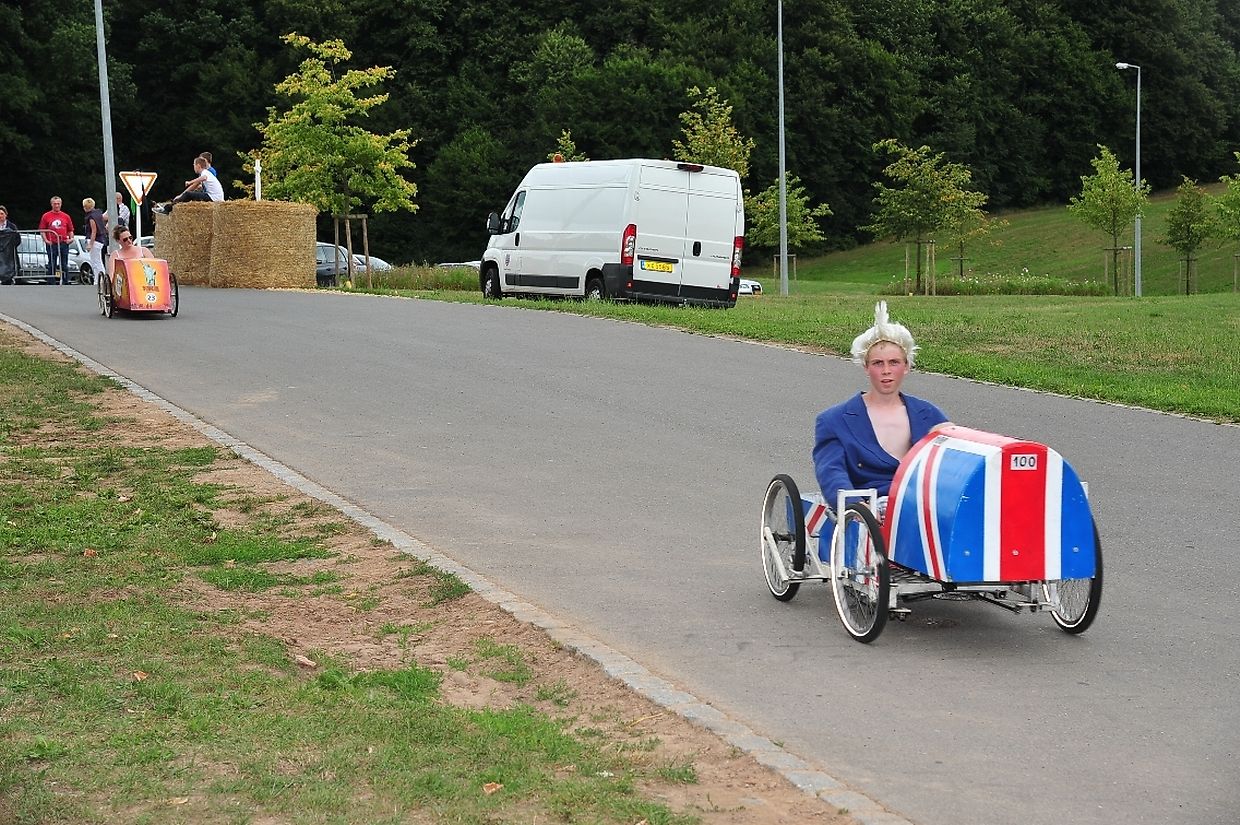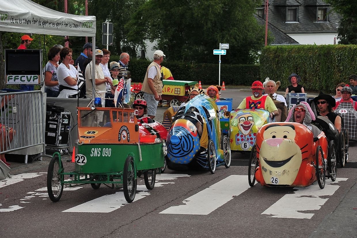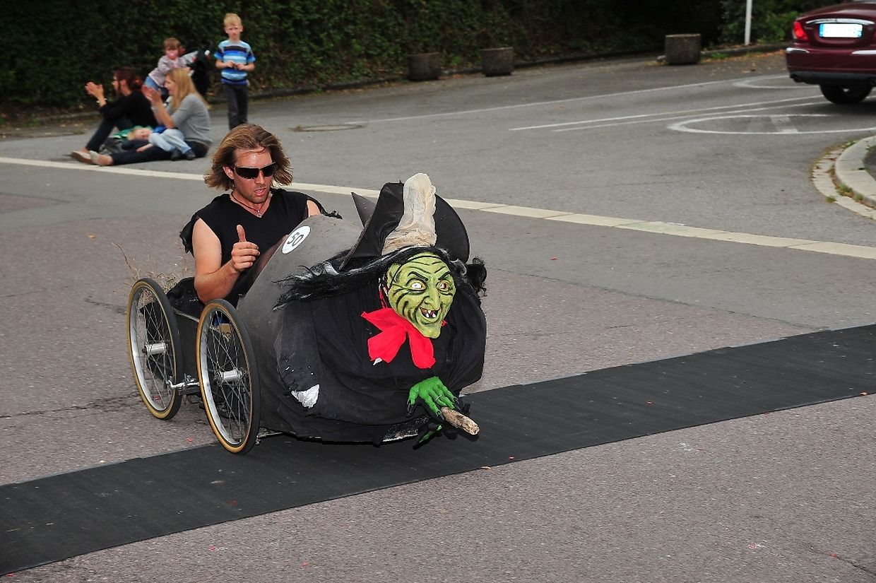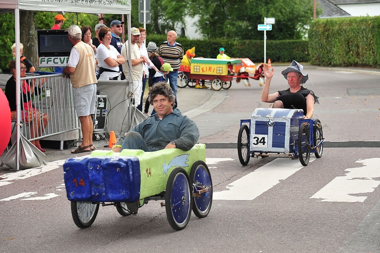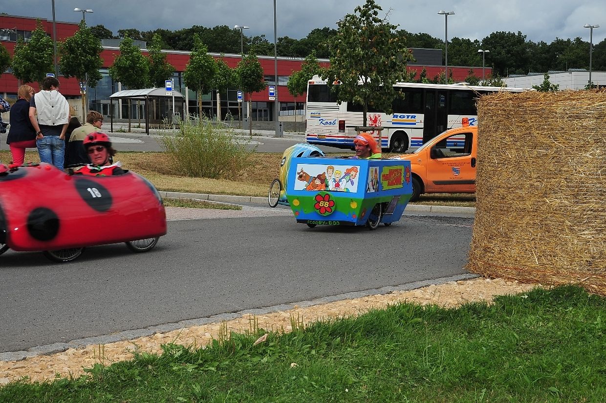 Am 18. August war es das erste Mal dass die Seifenkisten und ihre wagemutigen Fahrer in ihren farbigen Kostümen in Redingen/ Attert in ihren tollen Kisten an den Start gingen und mit bis zu 50 Sachen den Straßen Abhang beim Atert Lycée hinuntersausten. Seifenkisten sind aus Holz, Sperrholz- Kohlefaser oder ähnlichen Materialien selbst konstruierte oder auf vorgefertigten Bausätzen montiert.