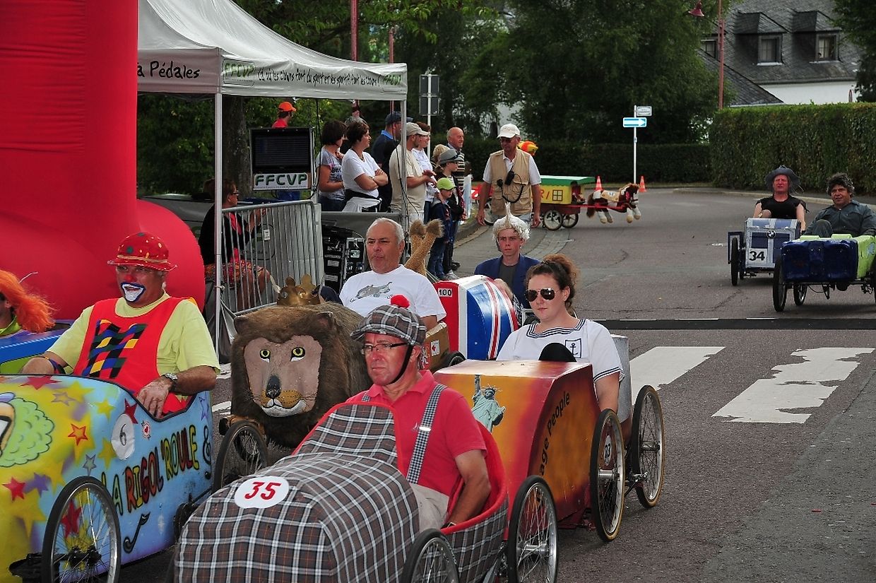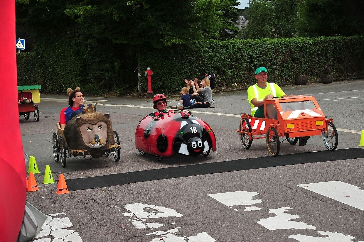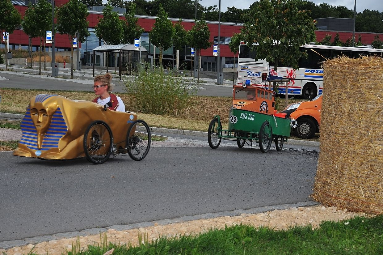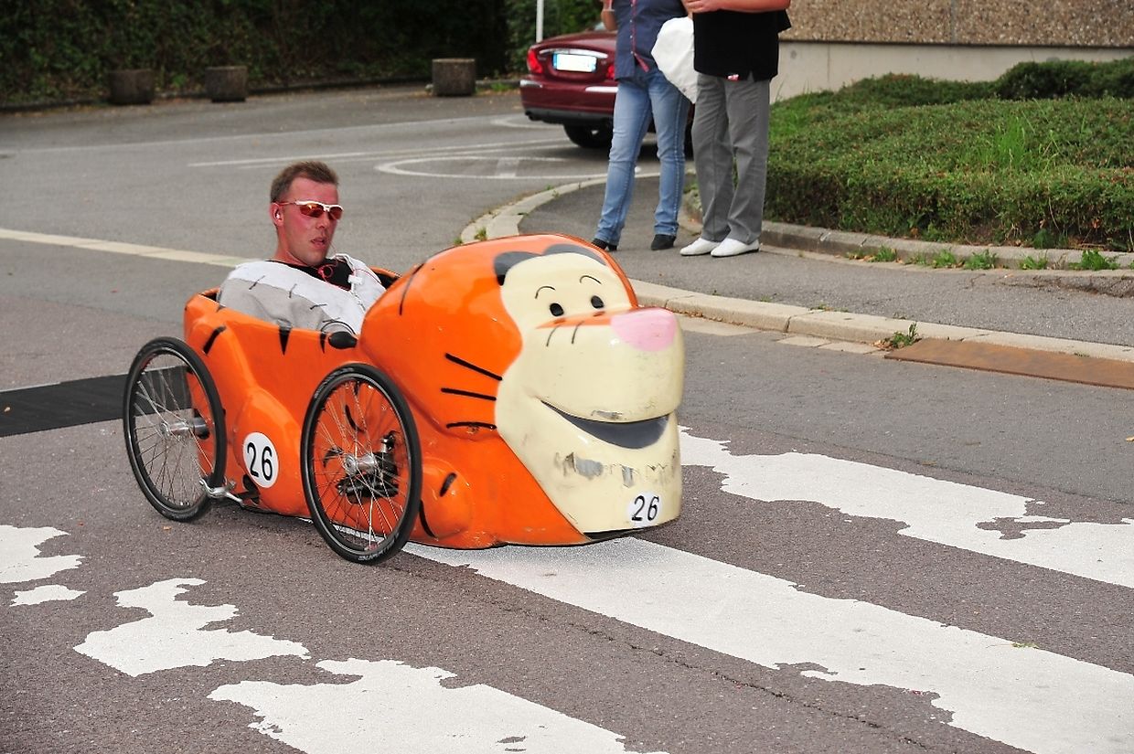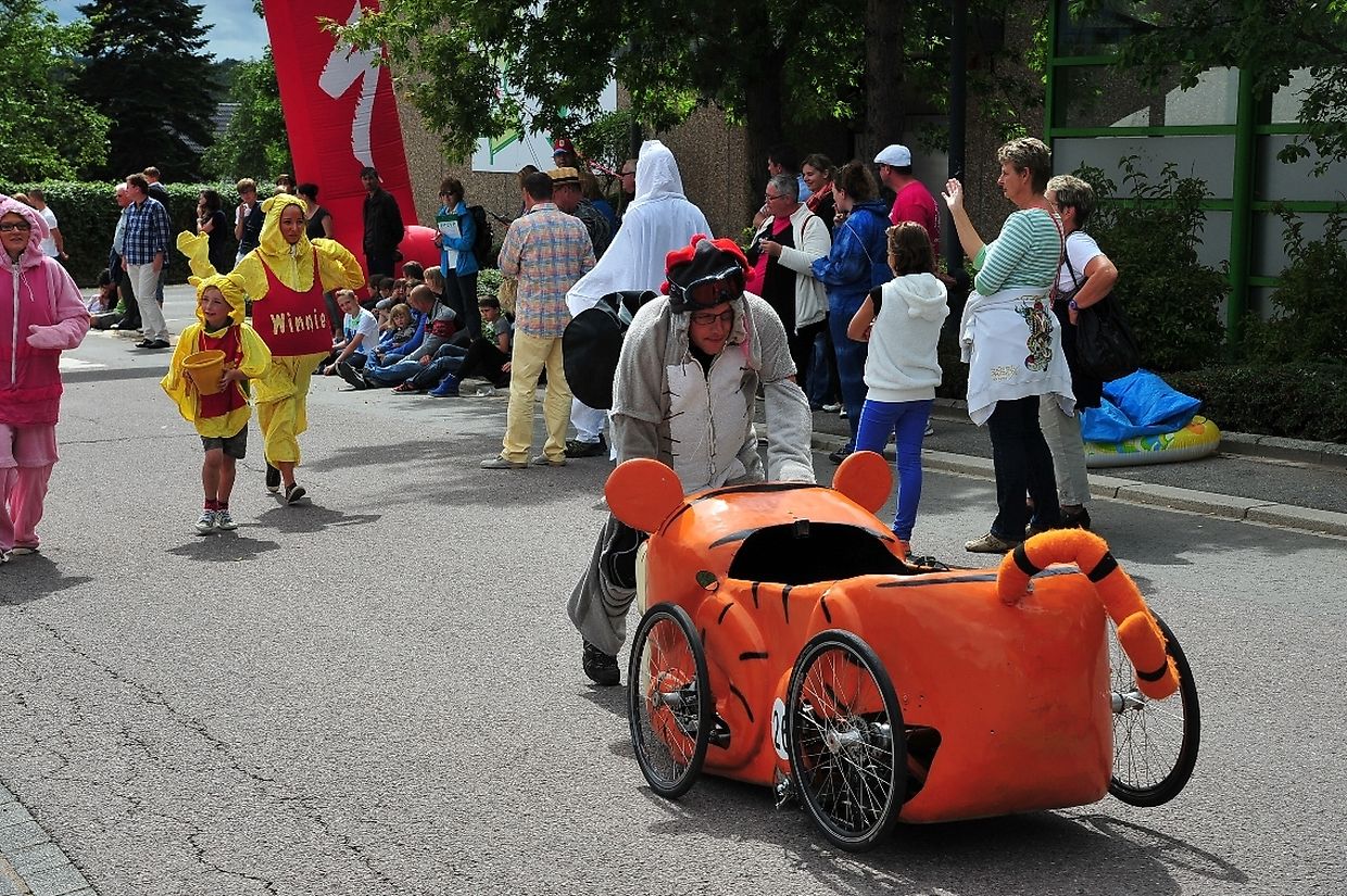 Am 18. August war es das erste Mal dass die Seifenkisten und ihre wagemutigen Fahrer in ihren farbigen Kostümen in Redingen/ Attert in ihren tollen Kisten an den Start gingen und mit bis zu 50 Sachen den Straßen Abhang beim Atert Lycée hinuntersausten. Seifenkisten sind aus Holz, Sperrholz- Kohlefaser oder ähnlichen Materialien selbst konstruierte oder auf vorgefertigten Bausätzen montiert.