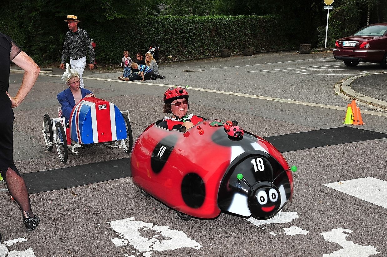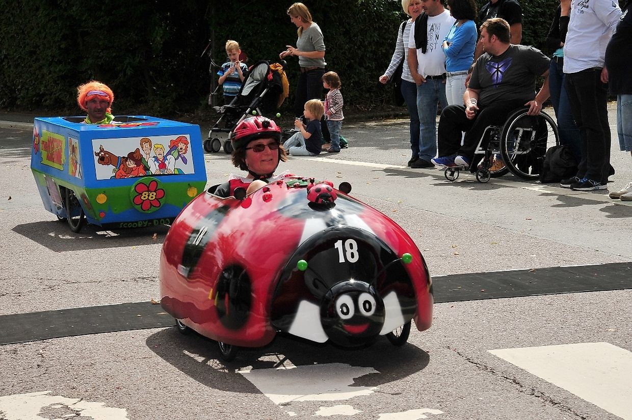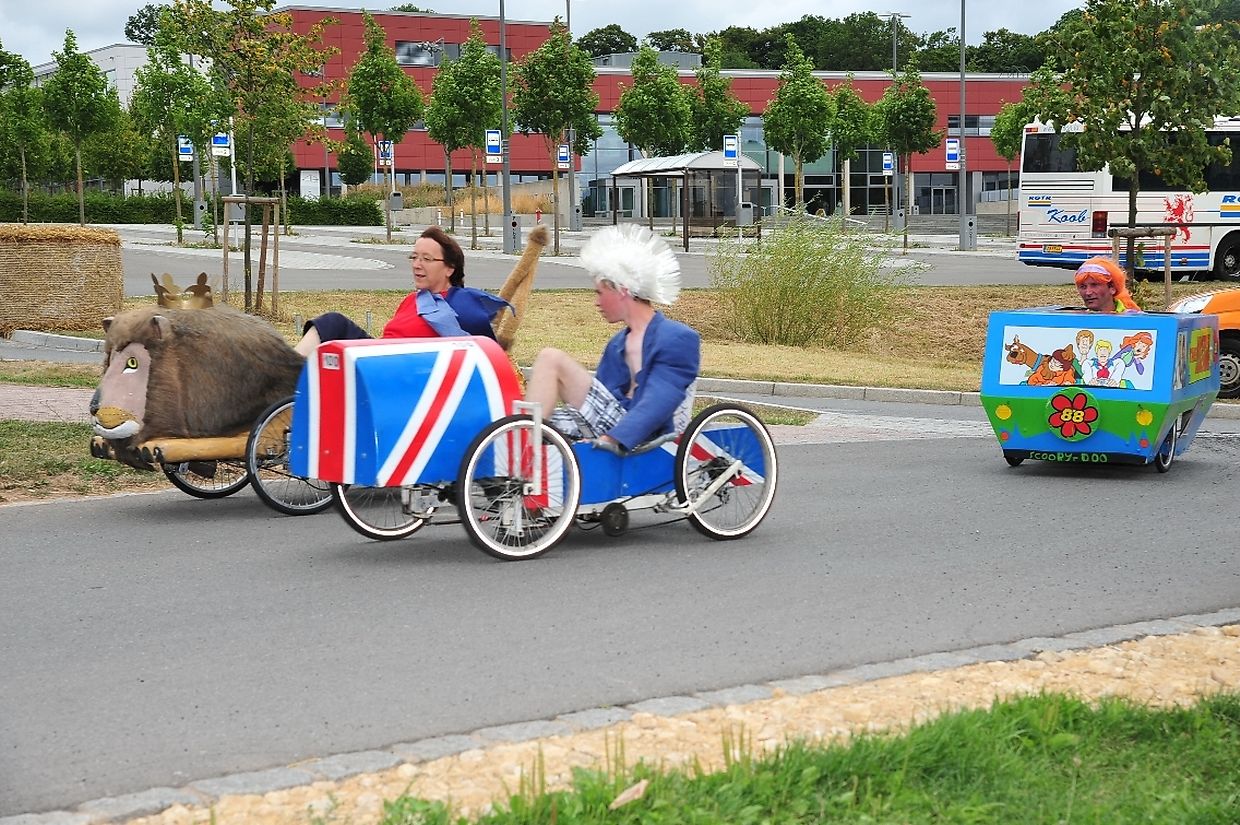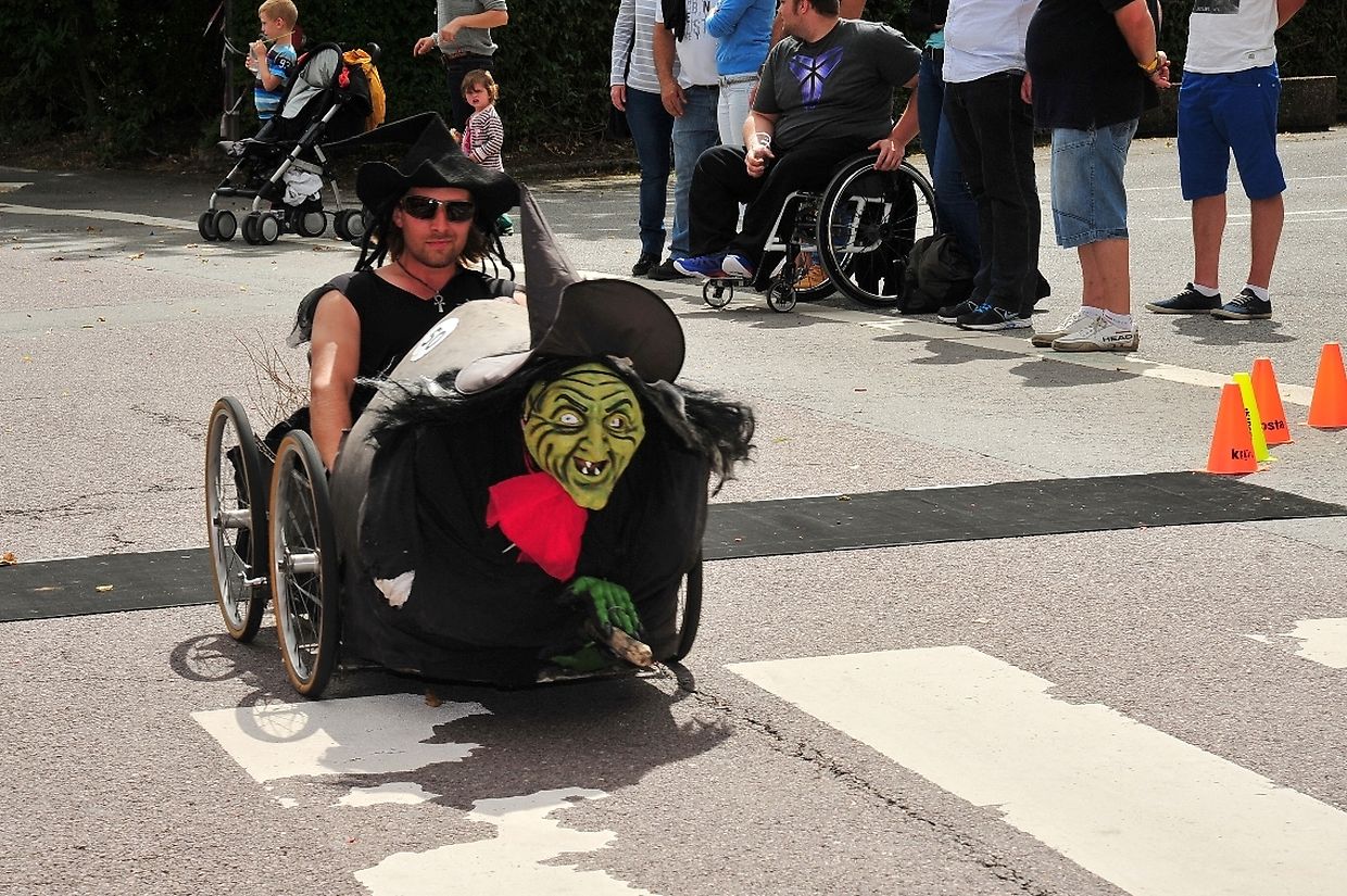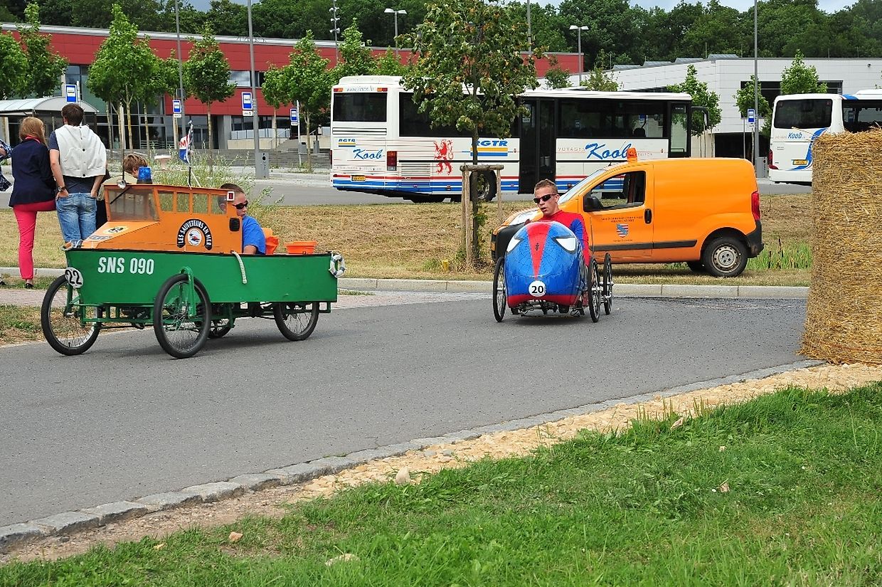 Am 18. August war es das erste Mal dass die Seifenkisten und ihre wagemutigen Fahrer in ihren farbigen Kostümen in Redingen/ Attert in ihren tollen Kisten an den Start gingen und mit bis zu 50 Sachen den Straßen Abhang beim Atert Lycée hinuntersausten. Seifenkisten sind aus Holz, Sperrholz- Kohlefaser oder ähnlichen Materialien selbst konstruierte oder auf vorgefertigten Bausätzen montiert.