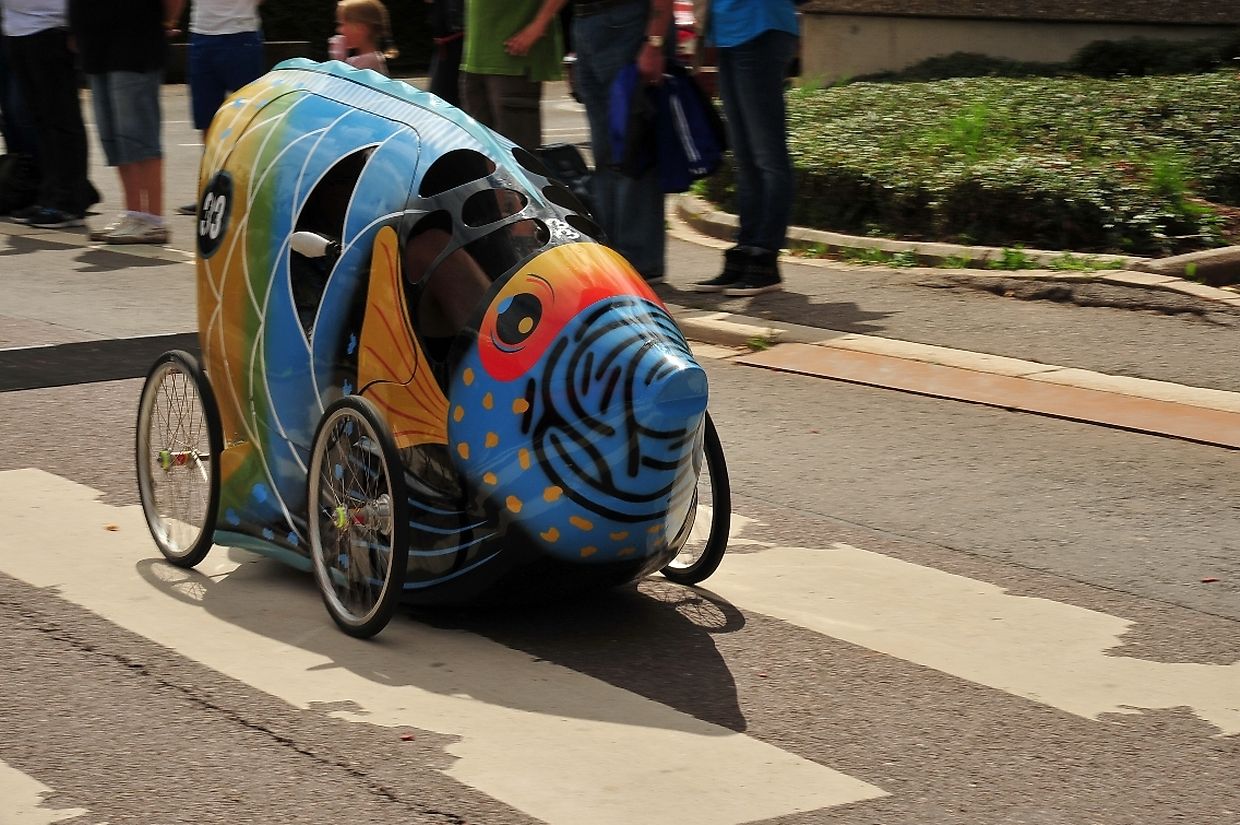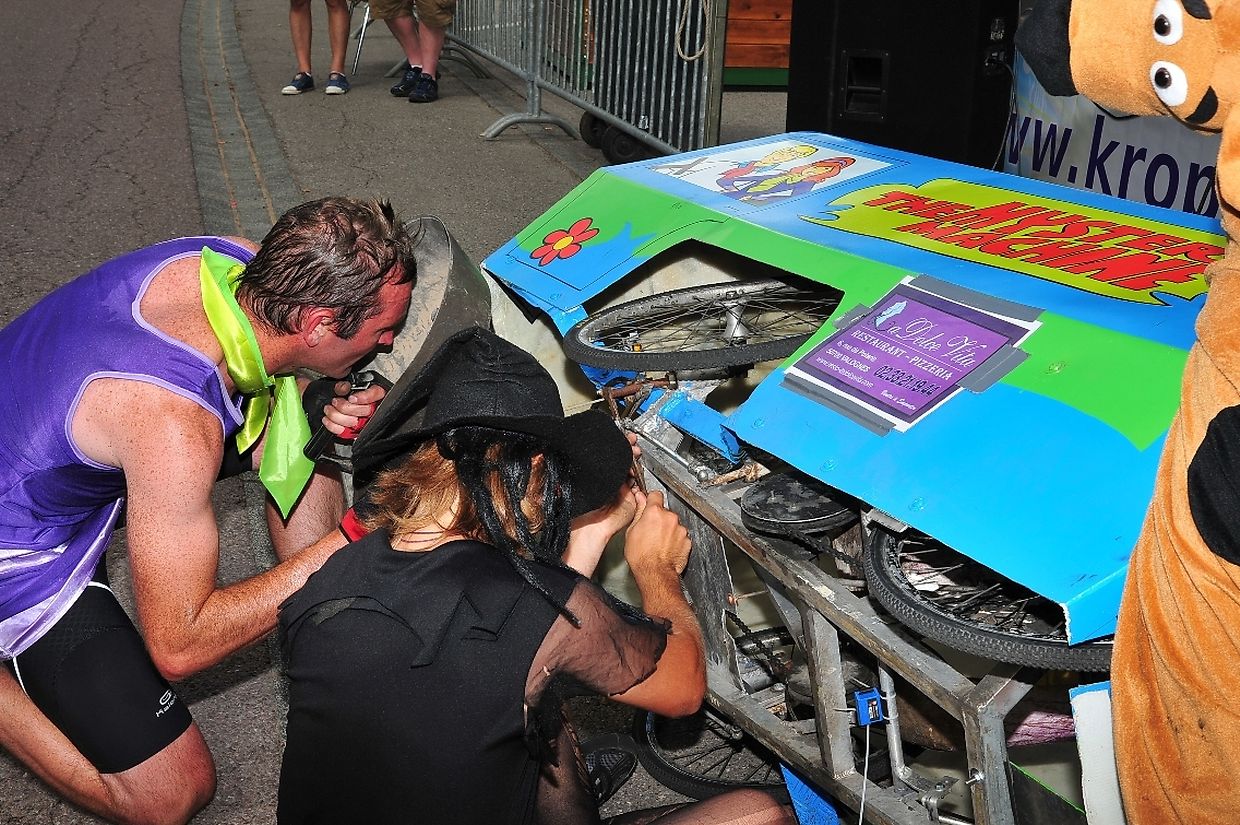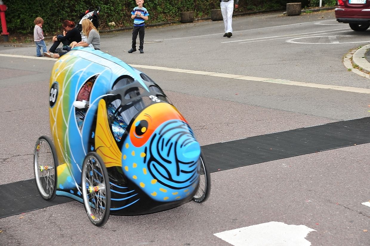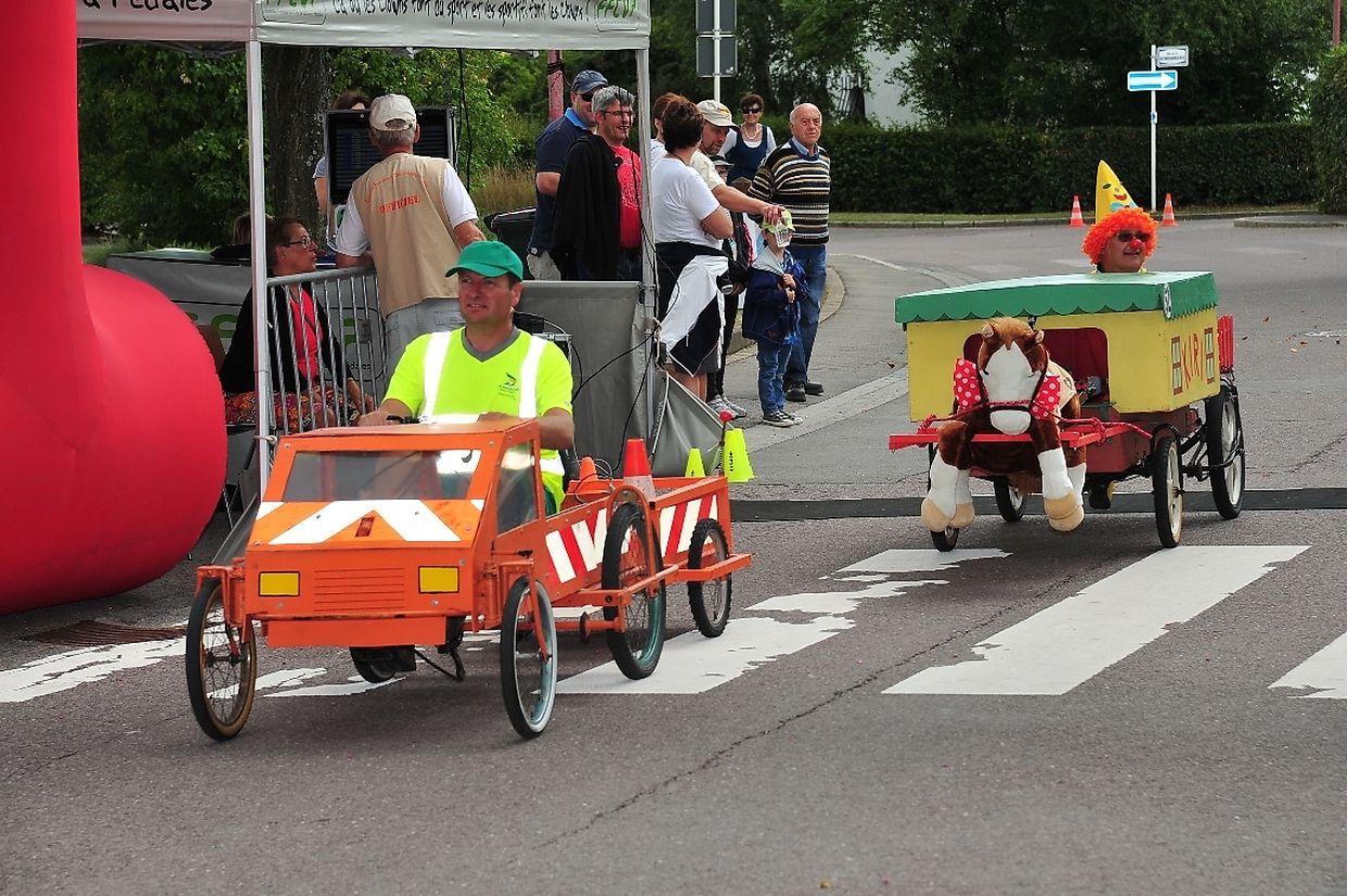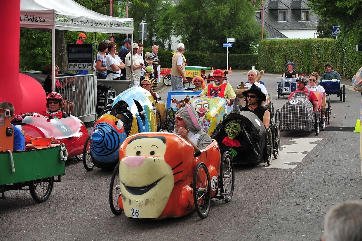 Die vierrädrigen buntbemalten und abenteuerlichen motorlosen Renner deren Antriebstechnik mit Kette und Pedalen auf Fahrradbasis besteht, lieferten sich nach dem Startschuss von Tom Faber, Vorsitzender der Sportkommission Gemeinde Redingen auf dem rund 900 Meter langem Parcours während zwei Stunden zeitweise spektakuläre Auseinandersetzungen. Dieses außergewöhnliche Rennen zählt zur Europameisterschaft der Seifenkistenrennen die von der „ Fédération Française des Clubs de Voitures à Pédales“ (FFCVP) organisiert worden war und die jedes Jahr auch in Frankreich, Italien, Österreich und der Tschechischen Republik ausgetragen wird. (TEXT/FOTOS: CHARLES REISER)