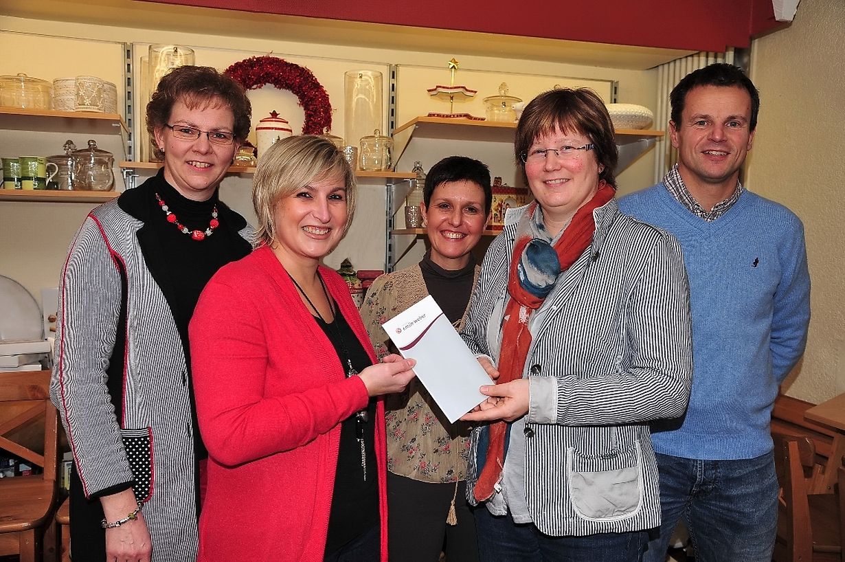 Über 450 Teilnehmer hatten den Fragebogen von der „ Union Commerciale et Artisanale Redingen/ Attert „ anlässlich der diesjährigen Braderie am 28. Juni im Kantonalhauptort Redingen ausgefüllt und in die Urne geworfen. Die richtigen Antworten der drei zu beantwortenden Fragen lauteten: das erste Kropemannsfest findet am 30. September 2012 statt, auf dem Emblem der Gemeinde Redingen sind drei Sterne und am „Kropemannspëtz“ vor dem Gemeindehaus befinden sich 17 Frösche. Bei der offiziellen Ziehung am 16. Juli fiel das Los auf Monique Jemming aus dem Préizerdaul. Anlässlich der Preisüberreichung die neulich „ an der Spënnchen“ in Redingen stattfand, bedankte sich Lotty Welfring als Vorsitzende des Redinger Geschäftsverbandes bei allen Besuchern für ihre Einkäufe die sie am Braderietag in Redingen getätigt haben und beglückwünschte die Gewinnerin zu ihrem gewonnenen Preis. So überreichte Elsa Frank, Verantwortliche von Voyages Emile Weber in der Cactus- Agentur in Redingen, einen Gutschein für eine Reise für zwei Personen mit Aufenthalt und Übernachtung in Düsseldorf. Dazu gehören gleich zwei Eintrittsgutscheine zum Besuch des Musicals „ Kein Pardon“ von Hape Kerkelings“ in Düsseldorf der vom Redinger Geschäftsverband gesponsert wurde. Der glücklichen Gewinnerin Monique Jemming wurde einen angenehmen Aufenthalt in Düsseldorf gewünscht wozu sie sich auch sehr herzlich bedankte. ( FOTO: CHARLES REISER)