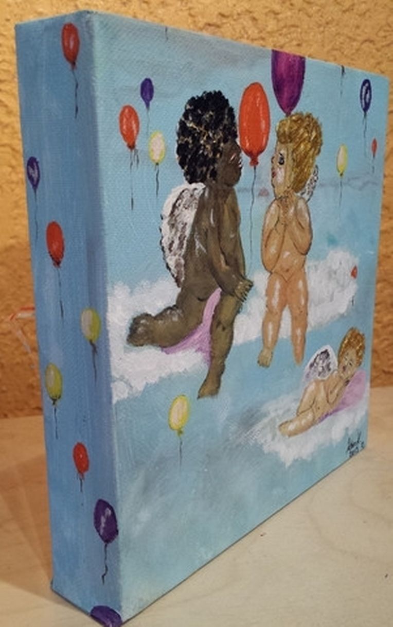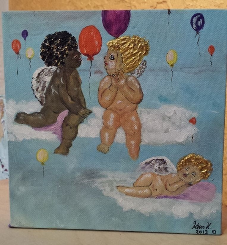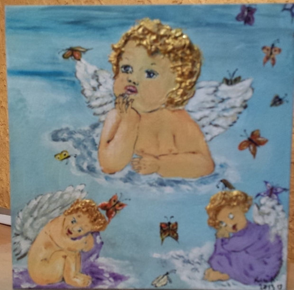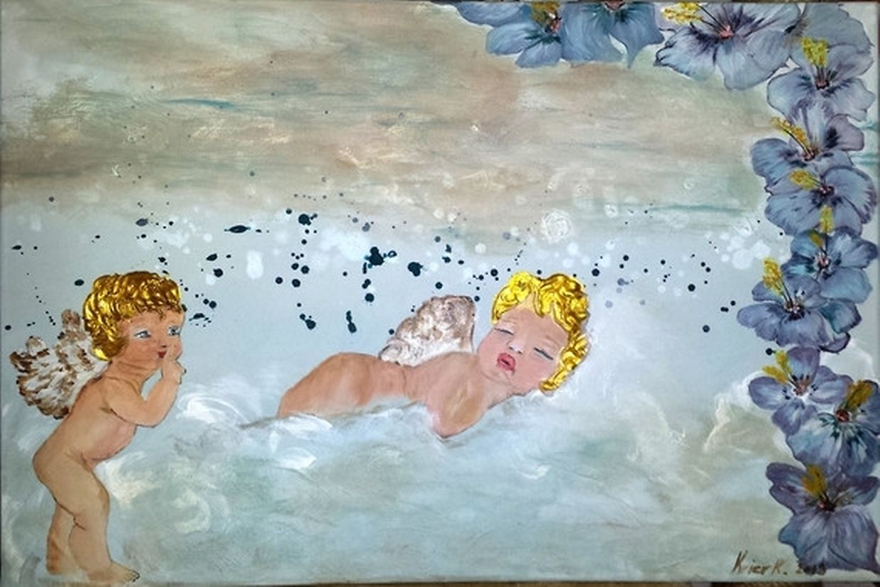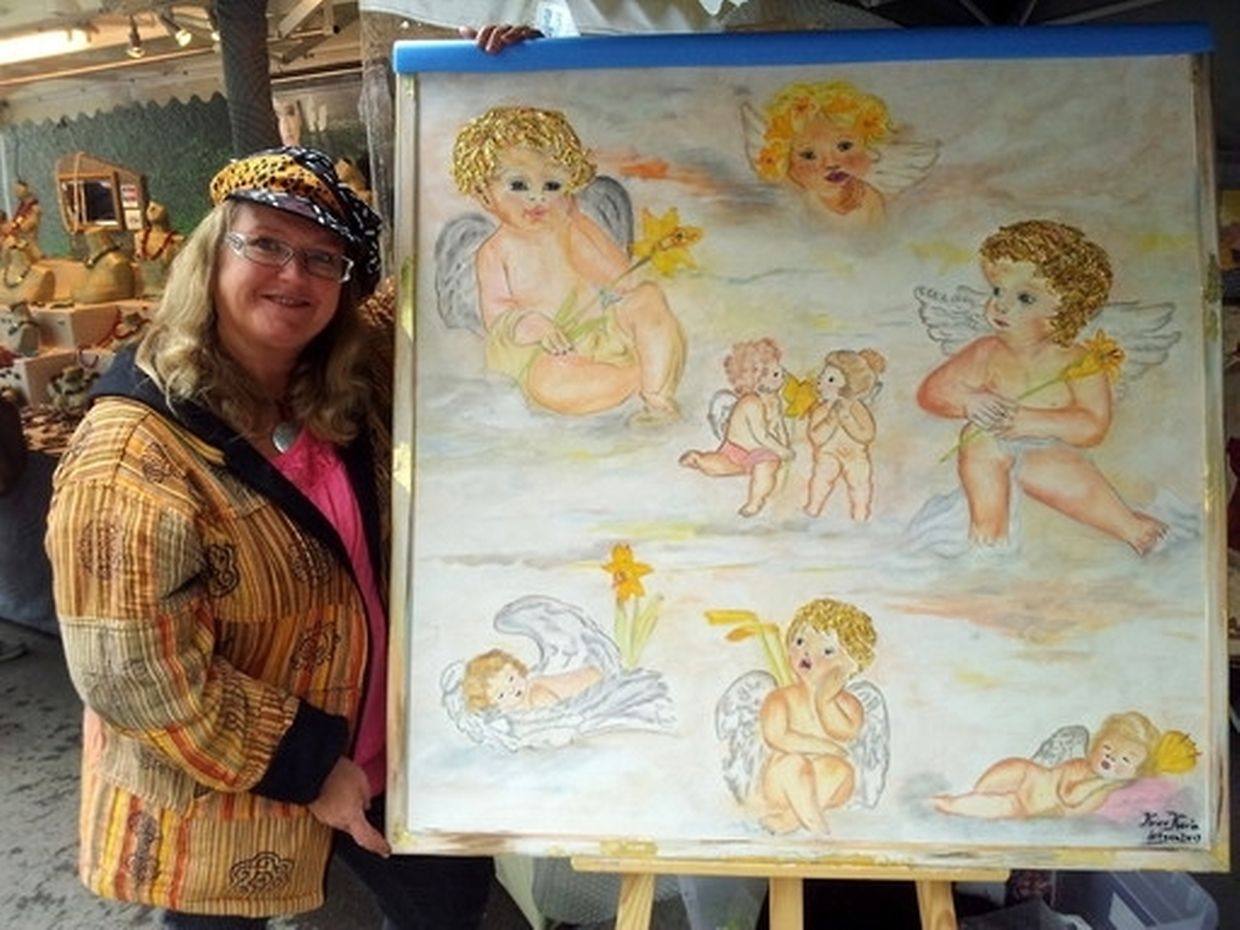 Karin Krier: Hauptsächlich male ich Acryl- und Mischtechniken. Bei Mischtechniken verbinde ich Acrylmalerei mit Collagen, Serviettentechnik, Strukturgips, Perlen, Strass usw.