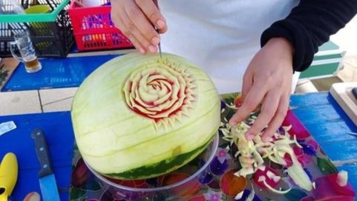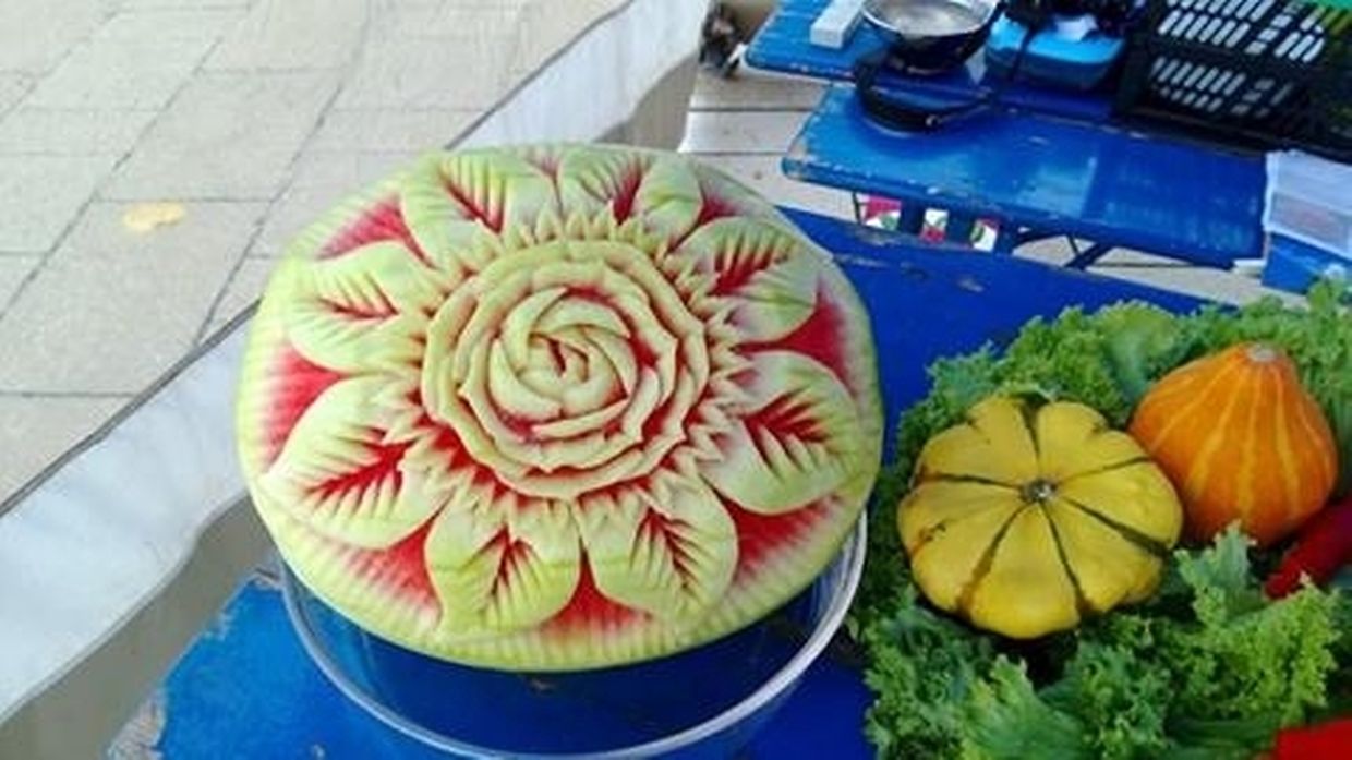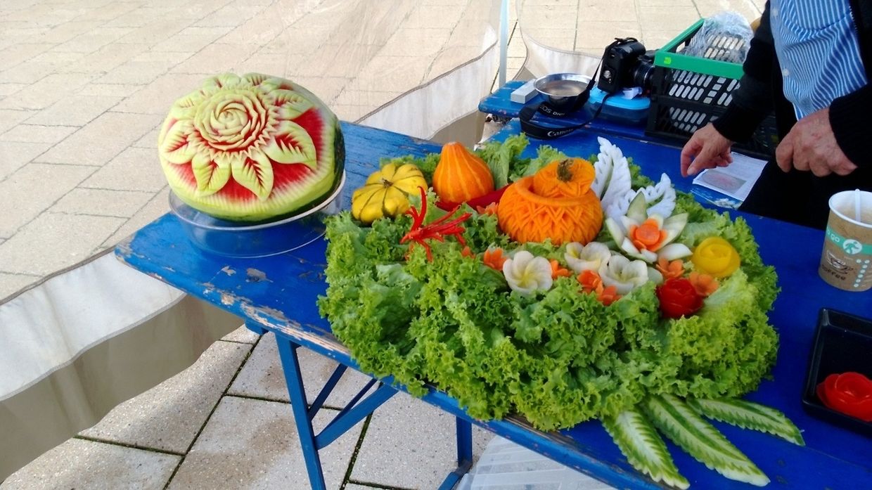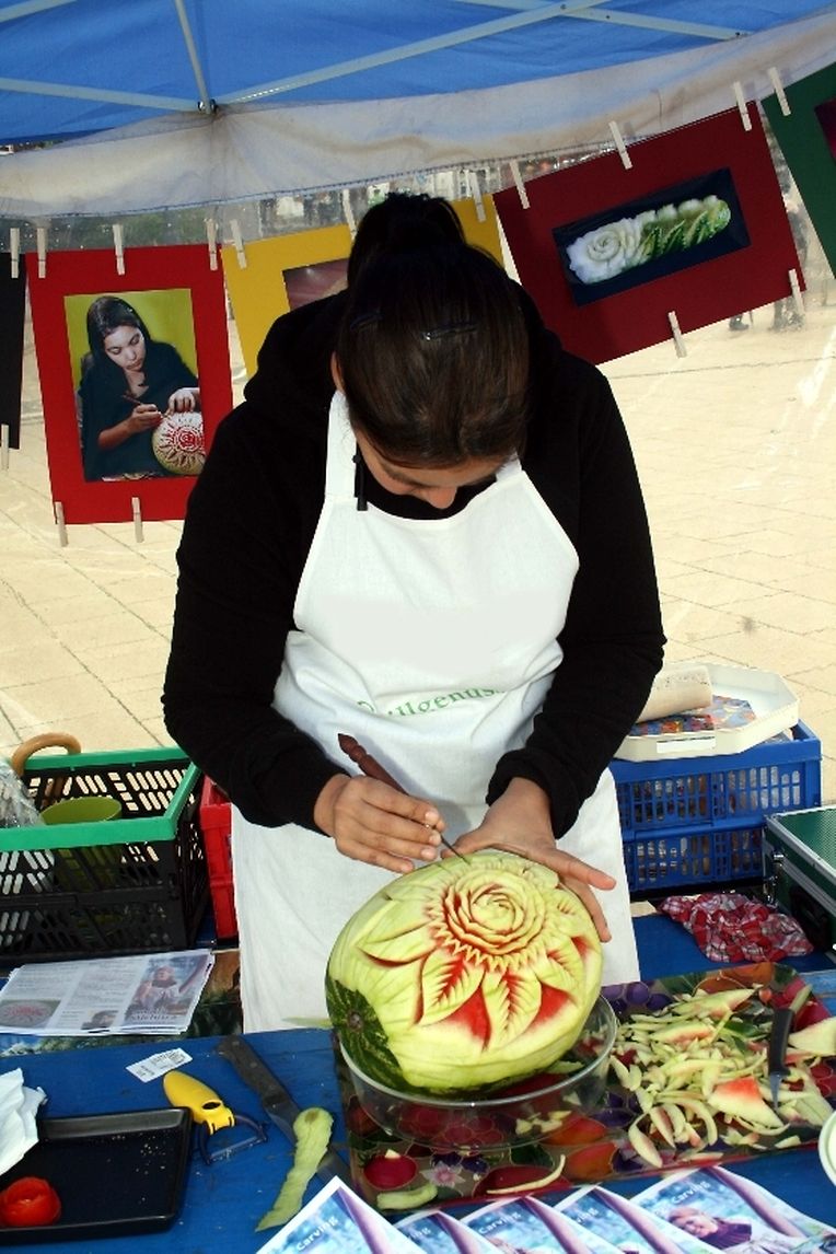 Auch Nicole Michitra kann man zusehen, wie sie aus Obst und Gemüse Kunstwerke schnitzt (food carving)