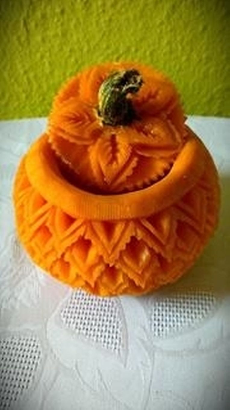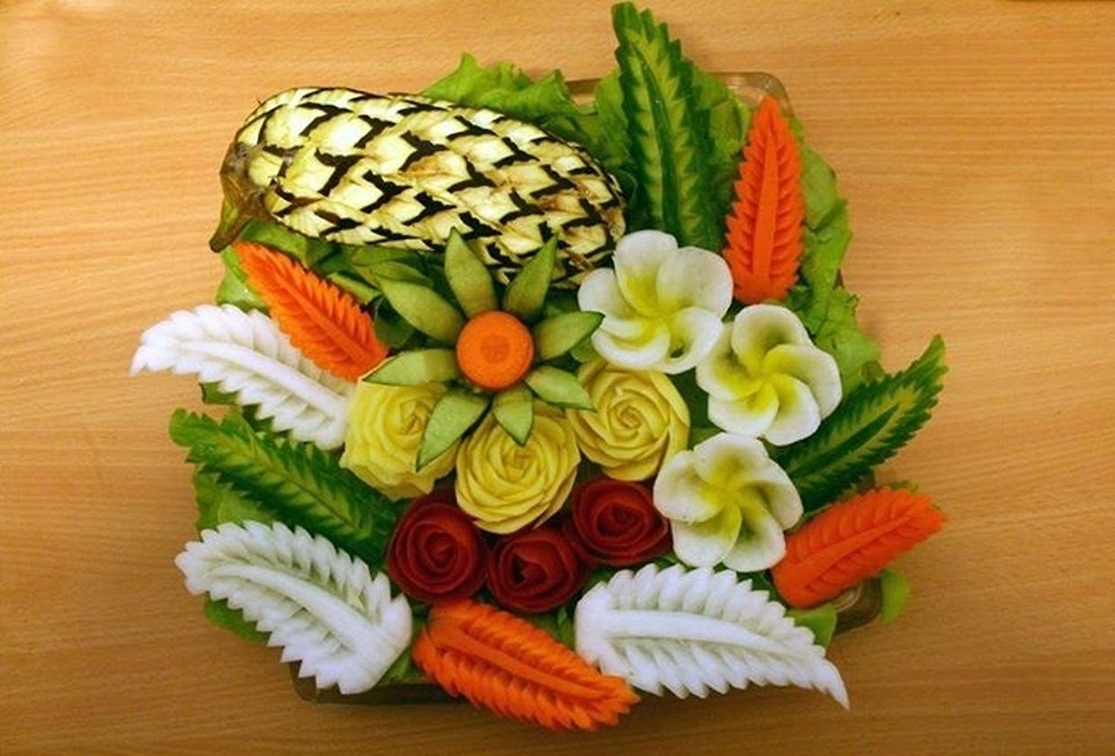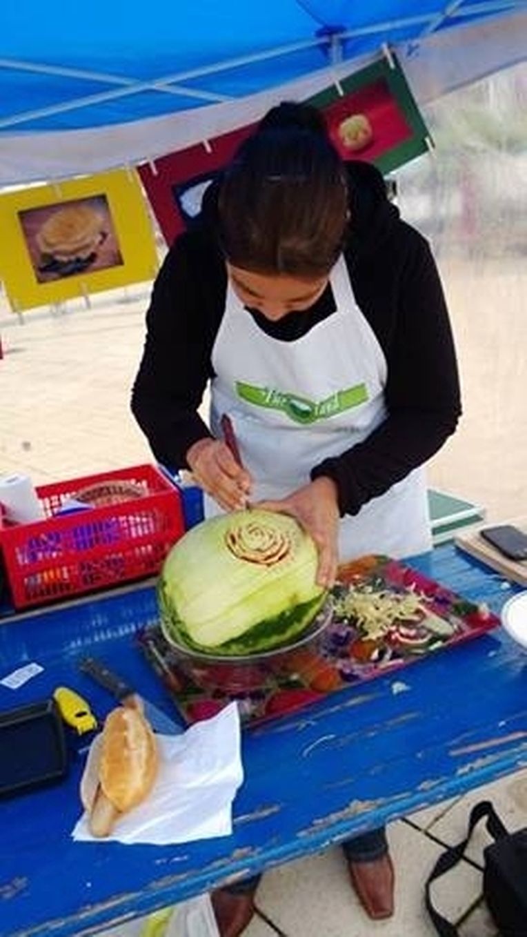Auch Nicole Michitra kann man zusehen, wie sie aus Obst und Gemüse Kunstwerke schnitzt (food carving)