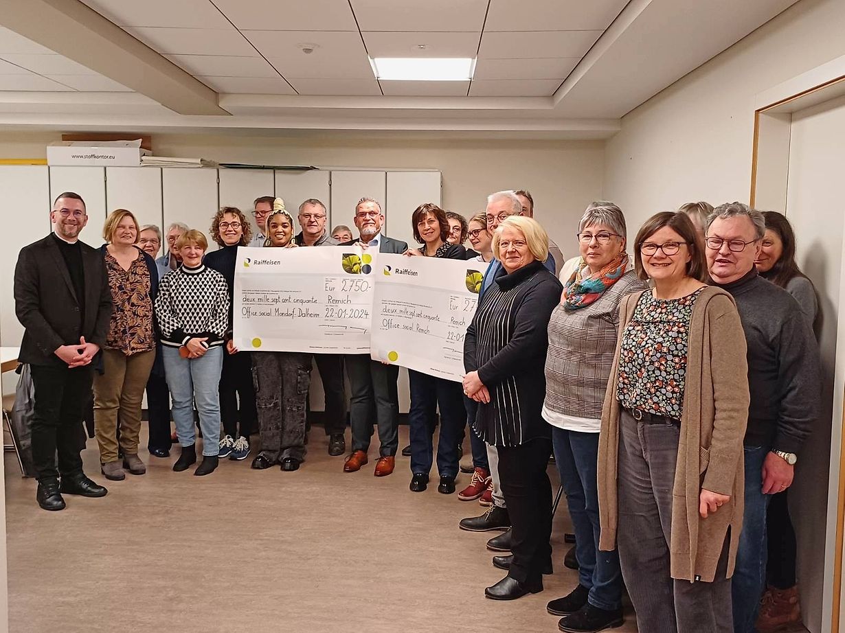 An der Par Dräilännereck Musel a Ganer hat déi zweet Editioun vun der Kollekt fir den Office social Munneref-Duelem a Réimech ee groußen Erfolleg. 5500 Euro konnten iwwerreecht ginn. Un dëser Aktioun waren déi nei gegrënnten „Les Amis de Saint-Nicolas“, de Pastoralrot, d’Oeuvre paroissiale Schengen, d’Massendénger aus der Par, a privat Leit bedeelegt. D’Stärenaktioun an de Kierchen am Advent huet zum Erfolleg bäigedro. Villmols Merci och fir déi vill Kleeder- a Liewensmëttelpäck!