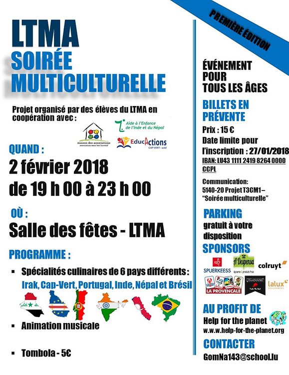 Les élèves du Lycée Technique Mathias Adam organisent une Soirée multiculturelle le vendredi 2 février à partir de 19h00.