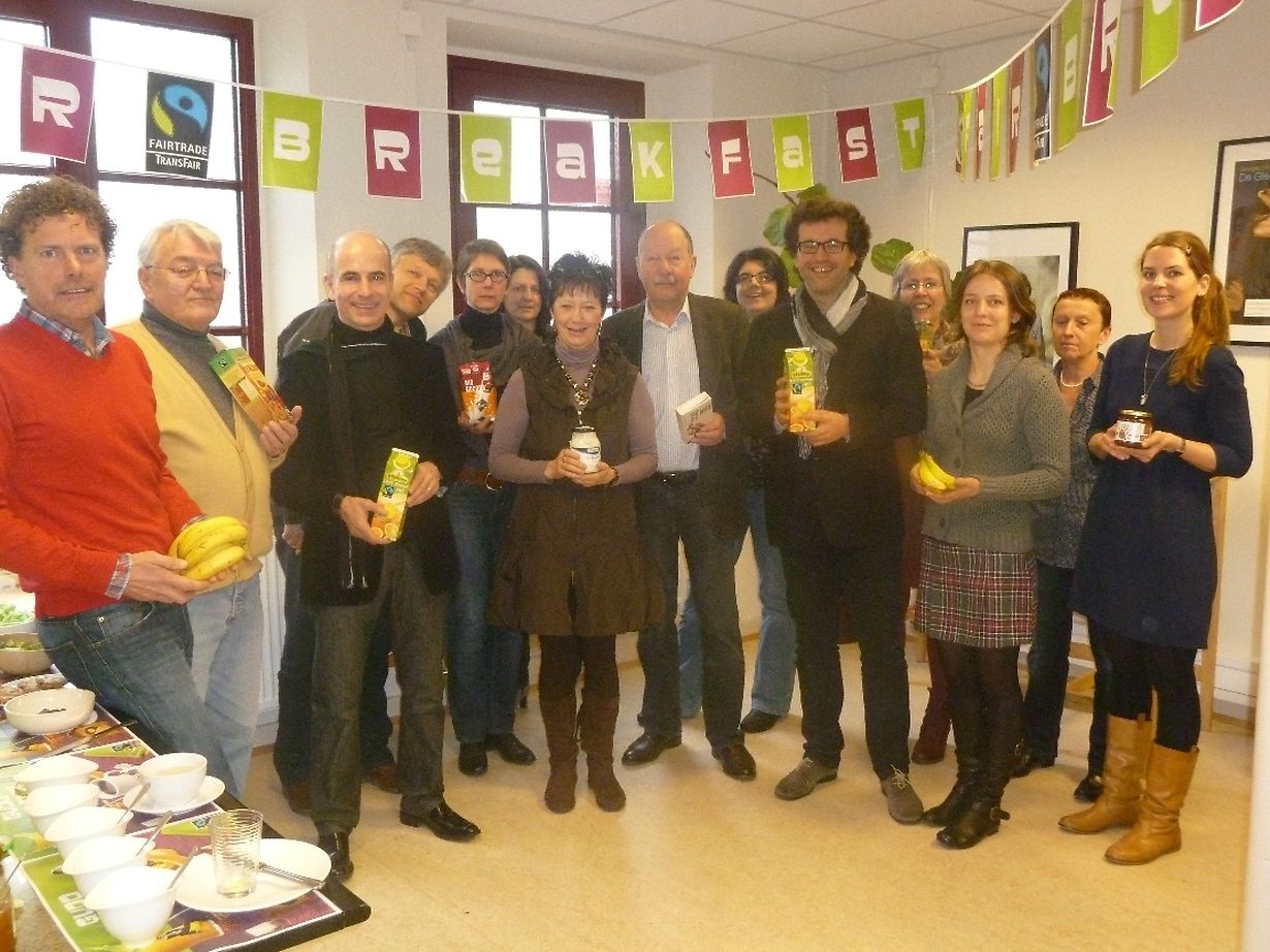 Am 3. März 2012 traf sich der Gemeinde- und Schöffenrat der Gemeinde Betzdorf mit dem Team von Fairtrade Lëtzebuerg zu einem fairen Frühstück in Roodt/Syre. Seit dem Jahr 2011 engagiert sich die Gemeinde, in der sich auch der Sitz von Fairtrade Lëtzbuerg befindet, aktiv nach dem Motto „Global denken, kommunal handeln“ als „Fairtrade Gemeng“. In dieser gemütlichen Atmosphäre mit Fairtrade Kaffee, Tee, Säften, Müsli, Honig, Marmelade, Kakao und Obst entstanden neue Ideen und Aktionen rund um den Fairen Handel um eine wirtschaftlich und sozial gerechtere Welt zu schaffen.
