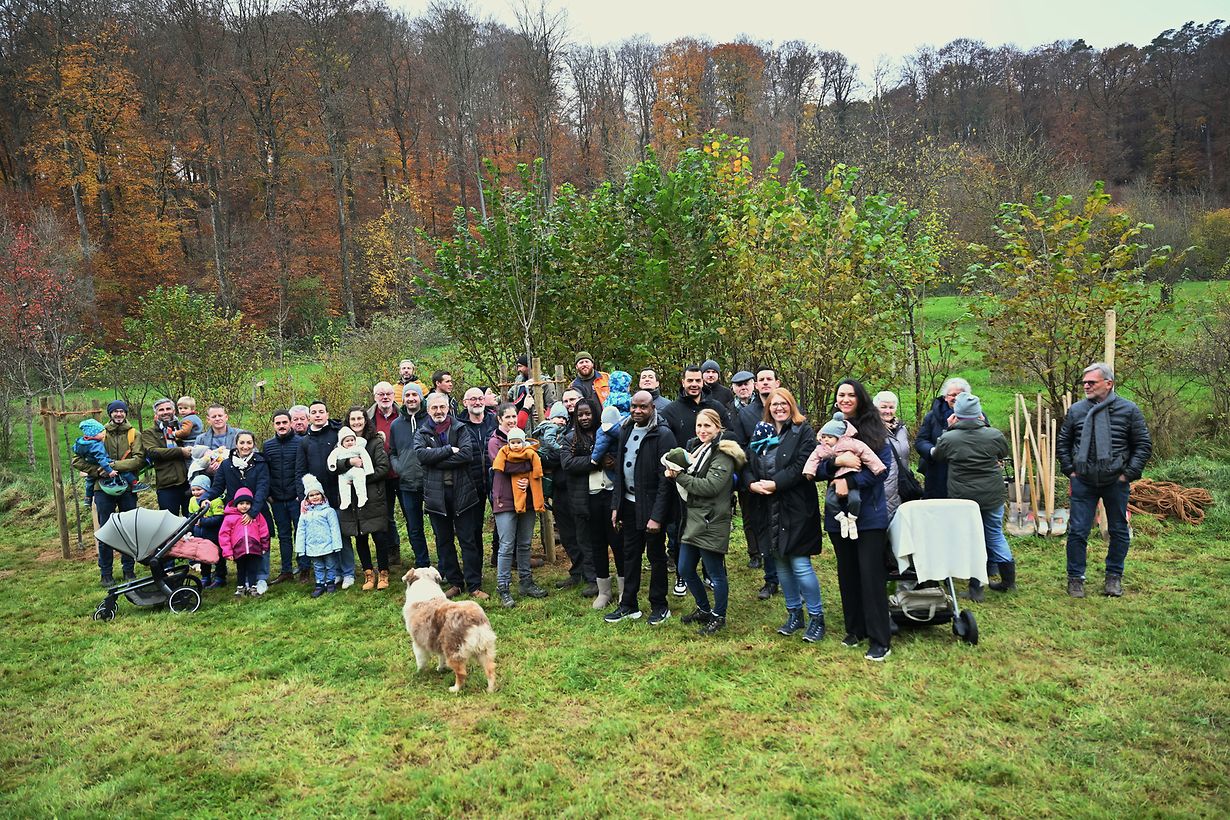 Sëll: Och den Dag vum Bam 2024 ass dest Joer an der klenger Gemeng Sëll gefeiert gin. Zesummen mat de Gemengevertrieder, dem Fieschter Thierry Hollerich mat sengem Team, dem Technischen Service an dene klenge Kanner mat hiren Elteren, ass an der Wiss „Am Dall“ zu Sëll een Sorbus- Bam (Mehlbeere) geplanzt gin. Zugläich ass och e Mirabelle- Bam fir den Félix Peters, als 1000. Awunner an der Gemeng Sëll gesaat gin. Ugaangs huet de Buergermeeschter Gérard Zoller no senge Wëllkommensgréiss a Wierder vu Merci op de Sënn an Zweck vun deser naturverbonnener Planzaktioun, higewissen, wou dess Beem dene klenge Sëller, déi am Laaf vum Joer 2023 – 2024 op d’Welt kommen sin, geduecht ass an si och bei deser Geleeënheet als nei Matbierger können ze begréissen. An dem Kontext ass och eng Plakette aus Holz mat den Nimm vun allen Neigebuerenen an och vum 1000. Awunner als Erënnerung bei déi jeweilig Beem gesaat gin. Als Ofschloss vun deser Planzaktioun huet d’Gemengeverwaltung Sëll op e Patt mat engem gudde Maufel an de Festsaal zu Sëll invitéiert, wou och all Elteren e Feiermëlder an e Bong als Merci an Empfang konnten huelen, fir sech e Bam no hirer Wiel können unzeschaafen. (CR) (Foto: Charles Reiser)