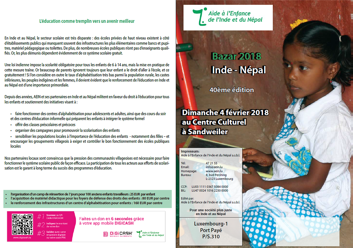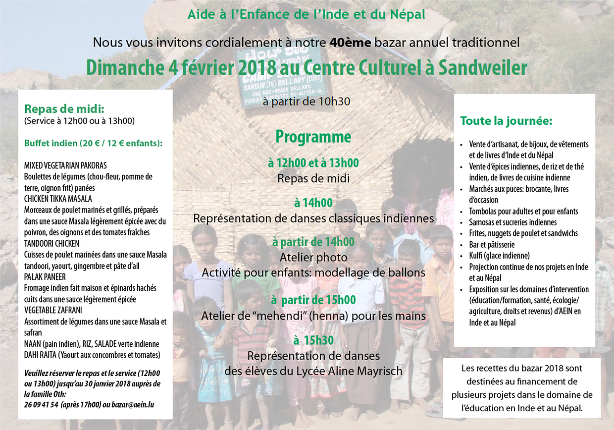 Les recettes du bazar sont destinées au financement de plusieurs projets dans le domaine de l’éducation en Inde et au Népal.