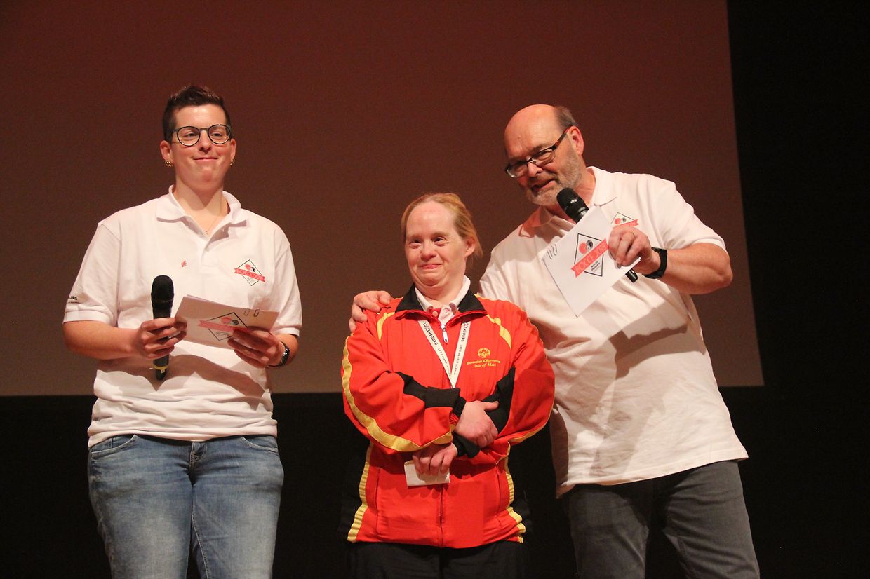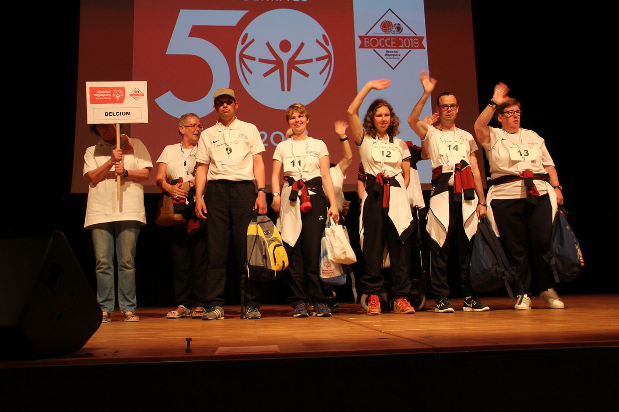 Zwei Stunden Unterhaltung waren für die Eröffnungsfeier des EURO-Bocce 2018 von Special Olympics im ARTIKUSS in Zolver angesagt. Vor einem gut gefüllten Saal, in Präsenz der Abgeordneten Simone Asselborn-Bintz, Claude Lamberty und Max Hahn sowie den Verantwortlichen der F.L.B.P. und Special Olympics, führte das Unified Duo Silvia Splicks und Pierrot Feltgen durchs Programm. Angefangen mit den Einmarsch und der Vorstellung der verschiedenen Sportler aus 12 Nationen. Anschließend heizten die Zumba Chicas aus Petingen den Sall ordentlich auf, so dass die Stimmung sofort auf einem guten Niveau angelangt war. Weitere bemerkenswerte Acts lieferten der junge talentierte Sänger Kalid Oke sowie Patricia Venancio ab, nicht zu vergessen die Tanzvorführungen von Just dance vom lokalen Sporting Club Beles. Zum offiziellen Part gehörten kurze Reden von Special Olympics Präsidentin, Pascale Schmoettem der Schöffin der Gemeinde Sanem, Simone Asselborn-Bintz sowie dem Vize-Präsidenten der F.L.B.P., Jean-Marie Schmit, sowie dem olympischen Eid der Sportler, vorgetragen in drei Sprachen. Ein zweiter Auftritt der Sänger und Tänzer rundete einen gelungenen Abend von hoher Qualität ab.