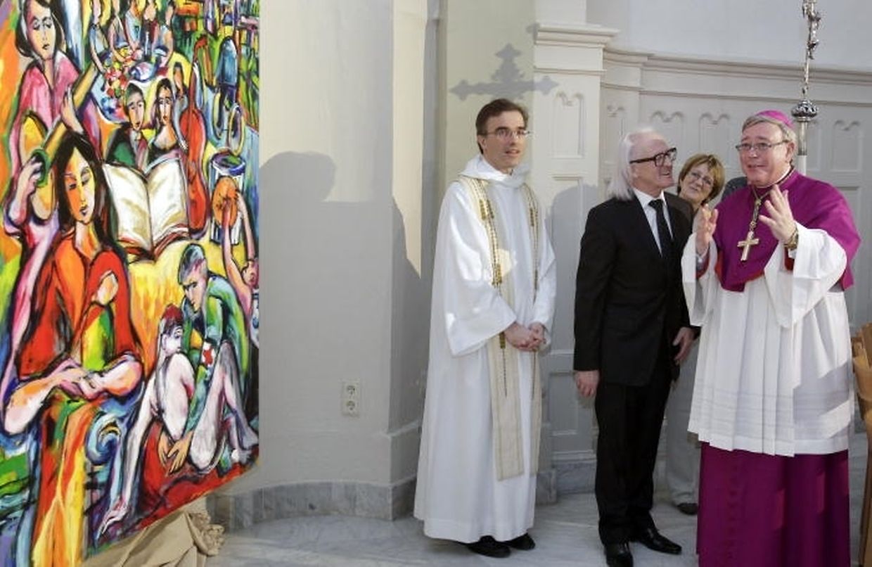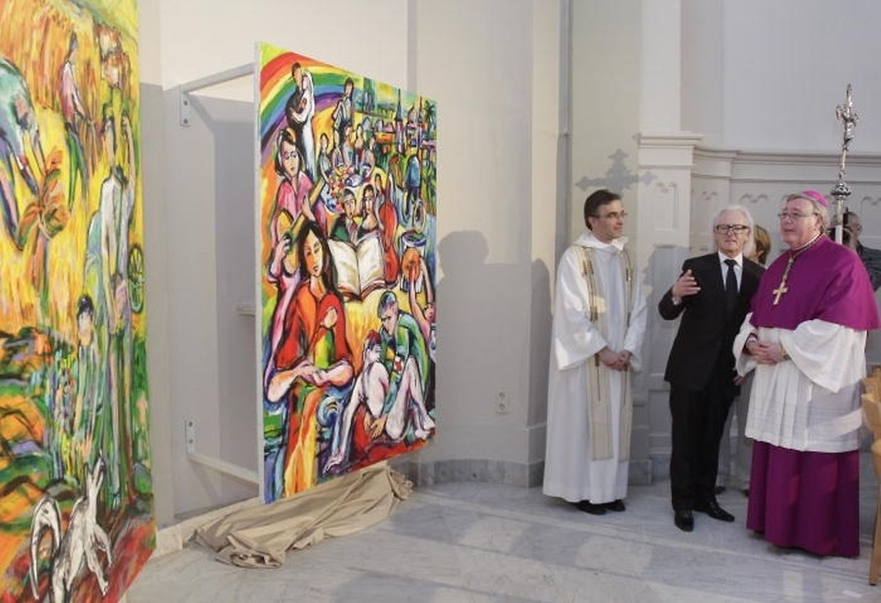 Es war ein bewegender Augenblick, als das farbenfrohe Triptychon von François Felten im Beisein des Künstlers enthüllt wurde. Auf dem dreigeteilten Gemälde im Chorraum ist jene Perikope aus dem Lukas-Evangelium dargestellt, die Pfarrer Nico Schartz später verkündete: Das Gleichnis vom Sämann, dessen Samen auf Felsen, unter die Dornen und auch auf guten Boden fällt.