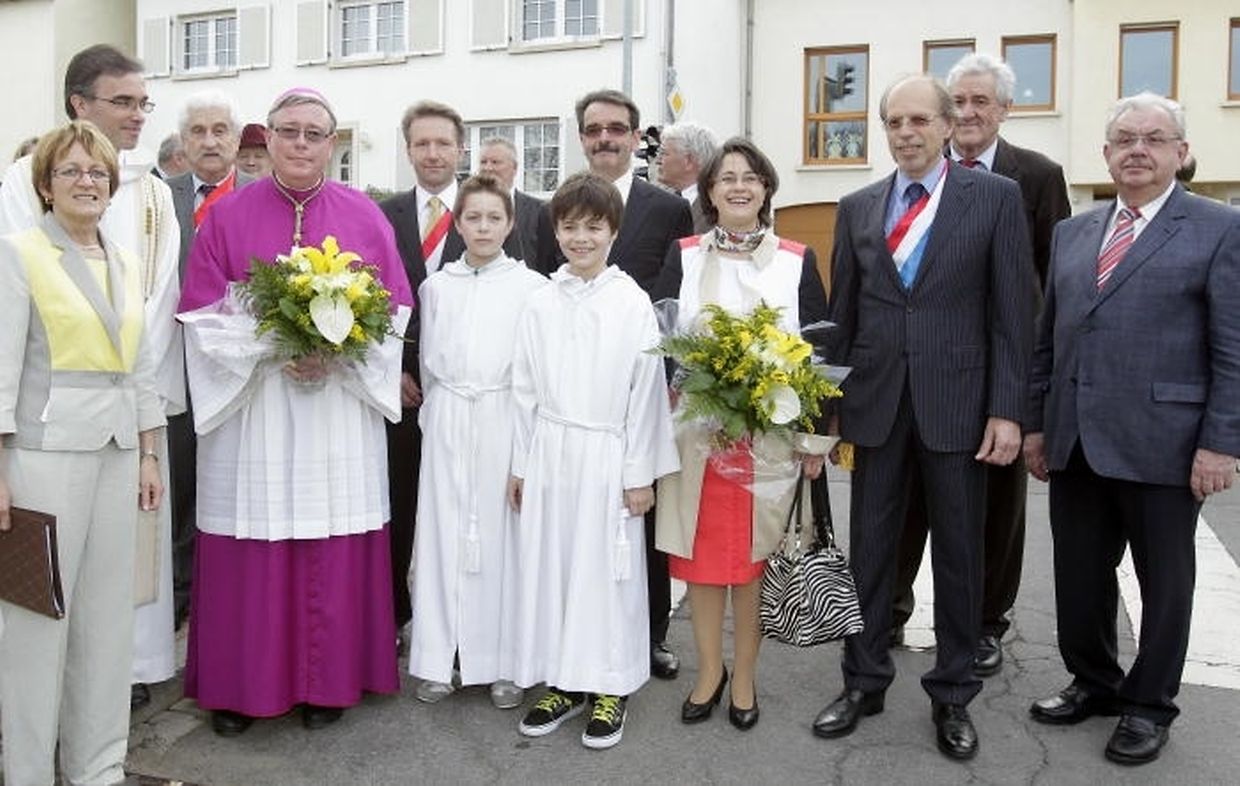 Vor dem Gotteshaus gab es Blumen aus Messdienerhänden für den Erzbischof und für Kulturministerin Octavie Modert, derweil die Harmonie aus Schüttringen im Beisein der Vertreter der Vereine mit einem musikalischen Willkommensgruß aufwartete.