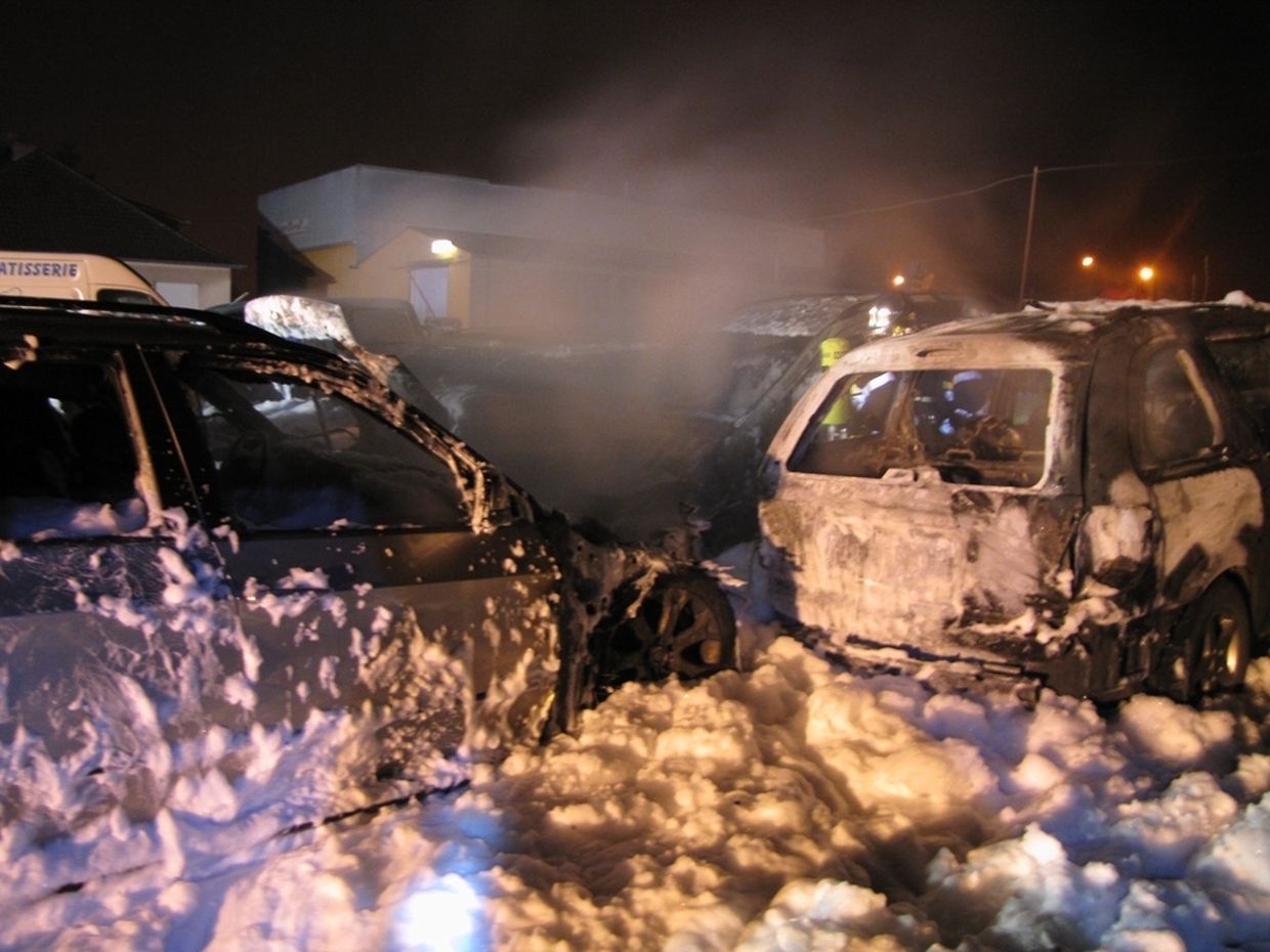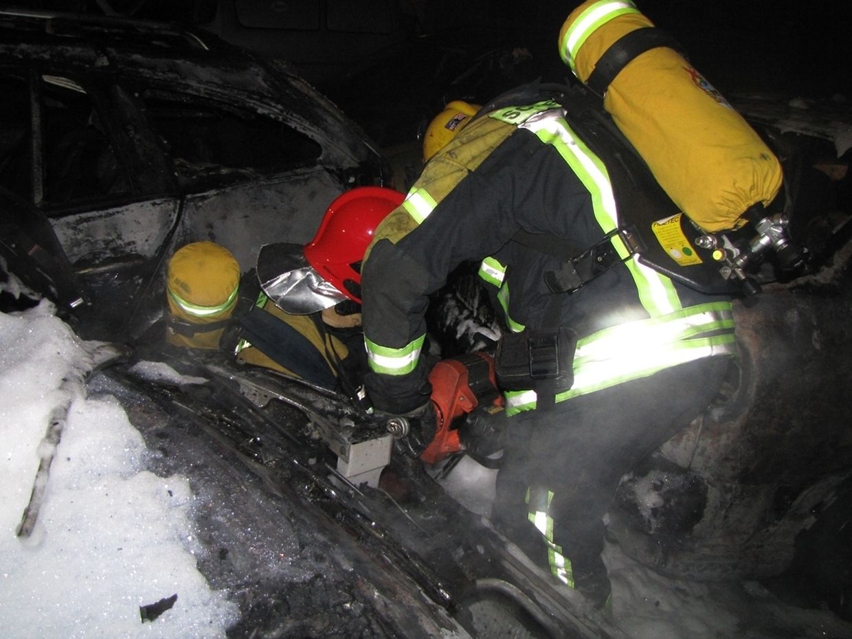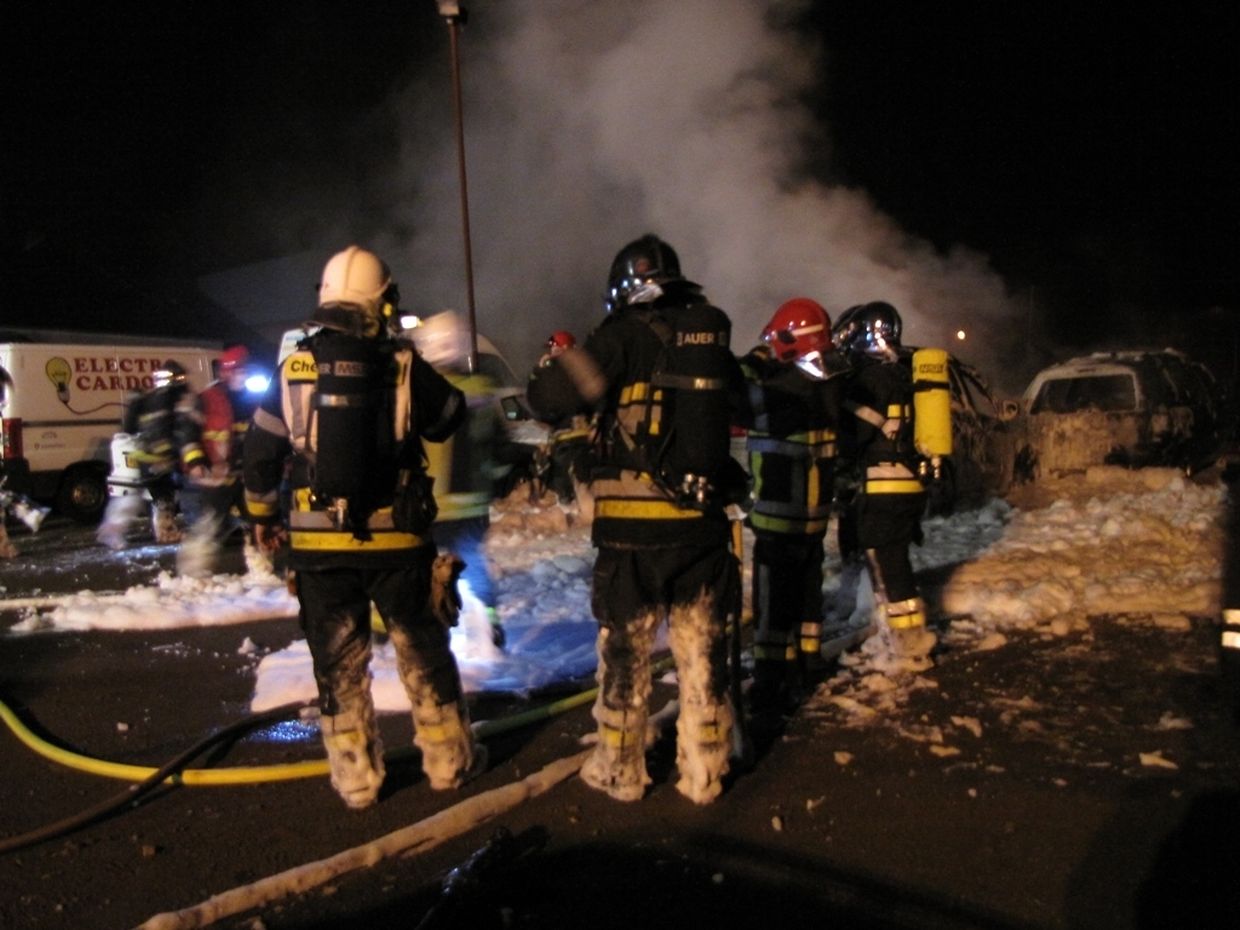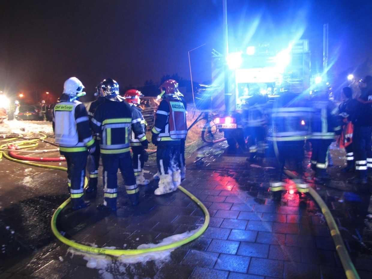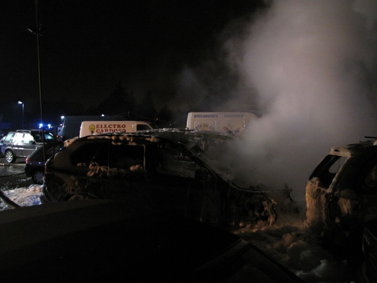 Einige Augenblicke später trafen die ersten Einsatzkräfte ein und standen tatsächlich einem ausgedehntem PKW Brand gegenüber. 4 Fahrzeuge standen bereits in Vollbrand. Trotz dem schnellen Eingreifen mehrerer Atemschutztrupps, welche die Flammen mit Löschschaum niederkämpften, wurden noch 4 weitere Fahrzeuge, welche alle sehr eng beieinander standen, durch die große Hitzeauswirkung schwer beschädigt. Verletzt wurde bei dem Brand niemand.